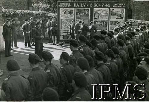 Wielkanoc w 1. Samodzielnej Kompanii Komandosów, dowódca kompanii kpt. Władysław Smrokowski składa życzenia żołnierzom. Caernarfon, Walia, Wielka Brytania, wiosna 1943 r. (fot. Instytut Polski i Muzeum im. gen. Sikorskiego w Londynie, zdjęcie udostępnione przez Fundację Ośrodka KARTA) -