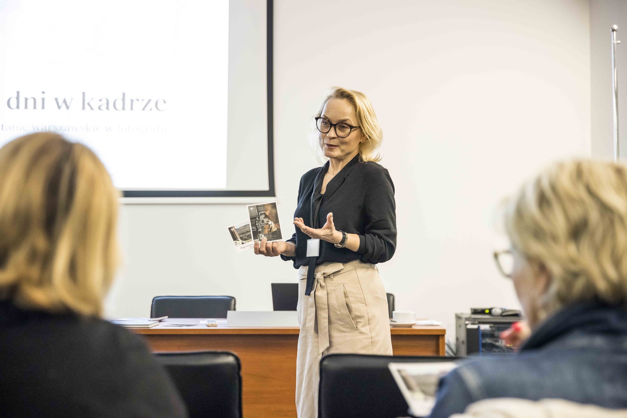 Podczas spotkania zaprezentowaliśmy nauczycielom zdjęcia, przechowywane w zbiorach Archiwum IPN, wykonane podczas powstania przez czterech fotografów: Henryka Śmigacza, Eugeniusza Lokajskiego ps. „Brok”, Sylwestra Brauna ps. „Kris” i Jerzego Tomaszewskiego. Prezentacji towarzyszyło krótkie omówienie biografii autorów zdjęć.