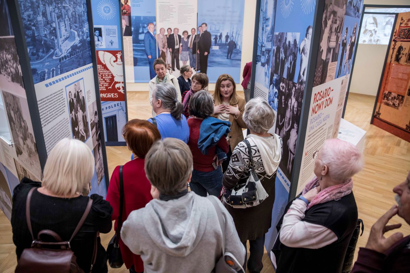 Po ekspozycji gości oprowadziła kuratorka wystawy Agnieszka Sodel (AIPN), która opowiedziała również historię pozyskania pamiątek i dokumentów związanych z rodziną Moszoro do zbiorów Instytutu. Anna Lasek (AIPN), nawiązując do wojennych losów bohaterów wystawy – Kazimierza i Ludmiły – omówiła kwestie związane z migracjami Polaków podczas i po zakończeniu II wojny światowej.