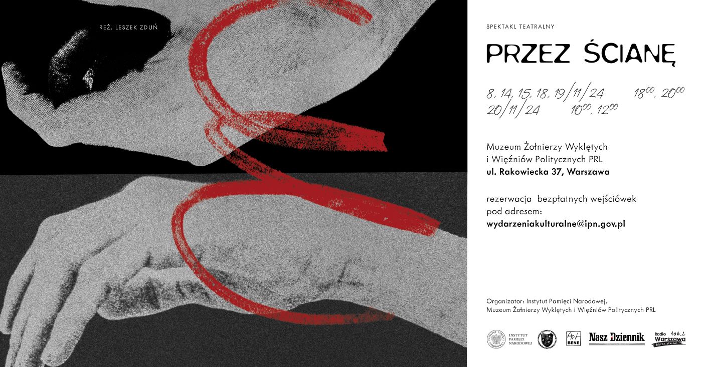 Ludzkie dramaty, które rozgrywały się przy ul. Rakowieckiej, były też źródłem niezliczonej ilości pięknych gestów. I o takiej właśnie postawie opowiada sztuka Przez ścianę – historia heroicznej walki o drugiego człowieka. Walki podjętej w warunkach upodlenia. To rzecz o miłości, która potrafi wszystko znieść. O miłości, która jest prawdziwie cierpliwa. To opowieść o pięknych ludziach, którzy nie pozwolili zdeptać swojej godności.