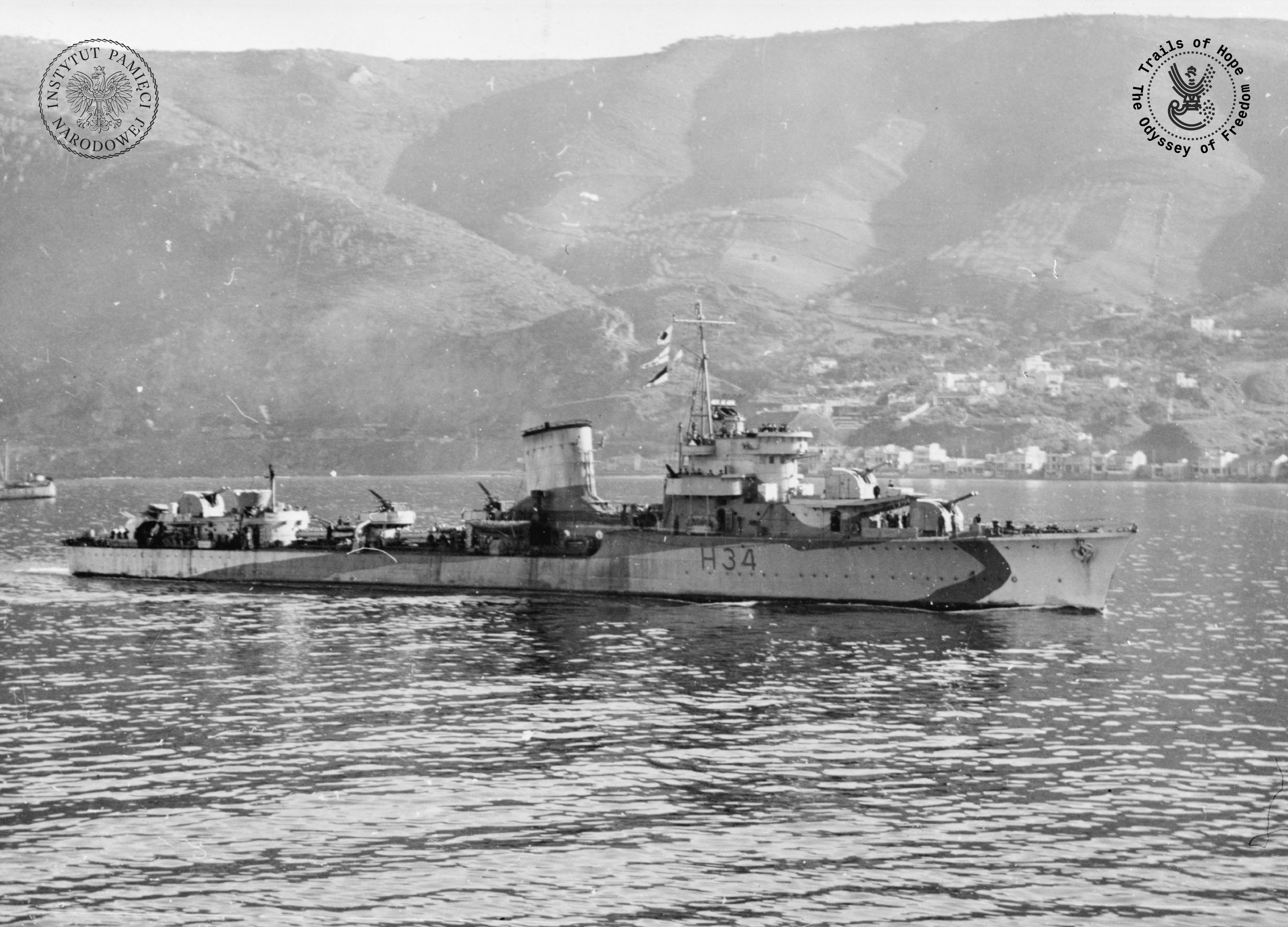 Wśród okrętów osłaniających barki desantowe był polski niszczyciel ORP „Błyskawica”.