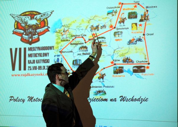 Dr Jerzy Kirszak – wielokrotny uczestnik Międzynarodowego Motocyklowego Rajdu Katyńskiego – opisał trasę, jaką pokonują motocykliści, oraz zadania, jakie realizują podczas podróży. Zaznaczył, jak ważne dla mieszkających tam Polaków są ich odwiedziny oraz jak pozytywnie witani są przez miejscową ludność. Za każdym razem uczestnicy Rajdu zawożą podarki dla polskich, rosyjskich, ukraińskich i białoruskich dzieci w szkołach i domach dziecka.