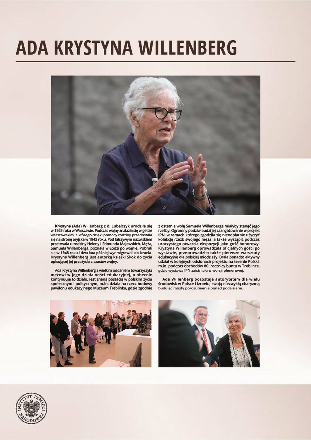 Samuel Willenberg, więzień i uczestnik buntu z 2 sierpnia 1943 r. w niemieckim obozie zagłady w Treblince, ocalał jako jeden z nielicznych. Po ucieczce z obozu przedostał się do Warszawy, gdzie rozpoczął działalność konspiracyjną. W czasie Powstania Warszawskiego walczył w batalionie „Ruczaj”. W 1950 r. wyemigrował wraz z matką i żoną do Izraela. Pomimo traumatycznych przeżyć wojennych, do końca życia (zmarł w 2016 r.) powracał razem z żoną Krystyną do ojczystego kraju. Willenbergowie stali się rzecznikami dobrych relacji polsko-żydowskich.