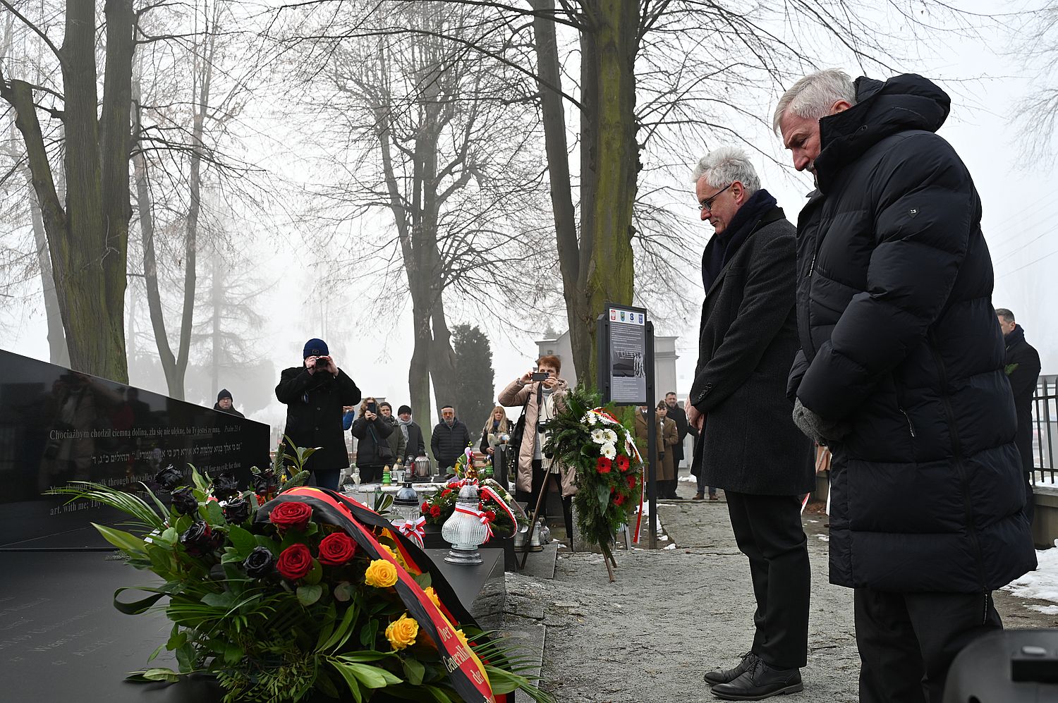 Kwiaty na zbiorowym grobie na cmentarzu komunalnym złożył m.in. dyrektor Oddziału IPN w Krakowie dr hab. Filip Musiał. Organizatorami uroczystości byli burmistrz Brzeszcz oraz Fundacja Pobliskie Miejsca Pamięci Auschwitz-Birkenau.