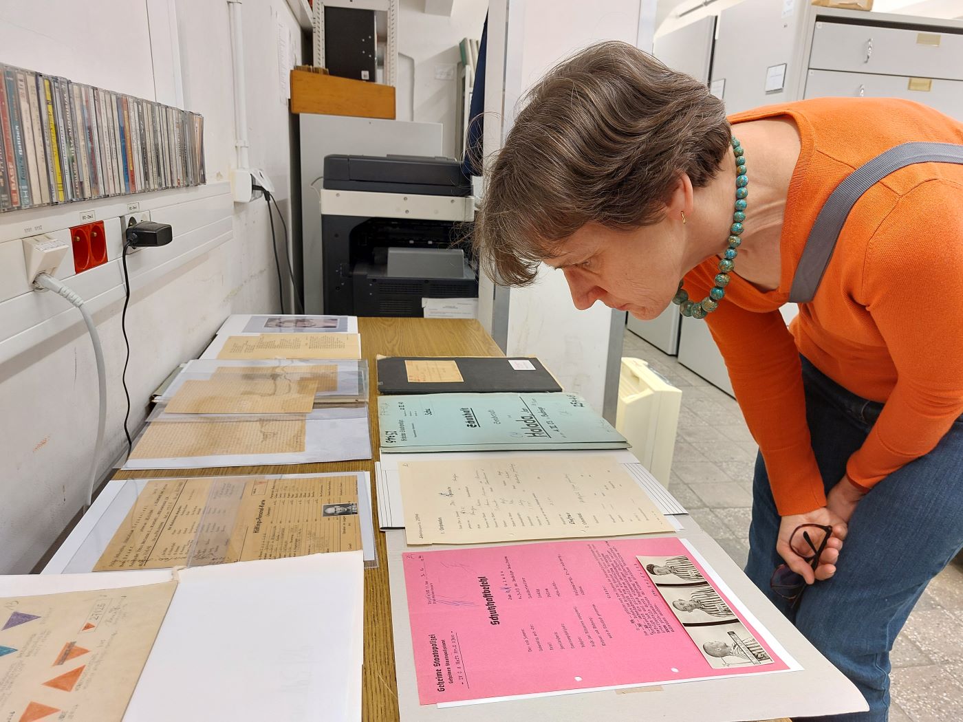 Następnie nauczyciele odwiedzili magazyn, w którym przechowywane są dokumenty i pomoce ewidencyjne po b. Głównej Komisji Badania Zbrodni Hitlerowskich w Polsce, gdzie mogli zobaczyć przykładowe dokumenty, w tym m.in.: karty z kartoteki KL Dachau sporządzane przez byłych więźniów tego obozu po wojnie, teczkę osobową więźnia z KL Sachsenhausen i grypsy obozowe dotyczące eksperymentów pseudomedycznych w KL Ravensbrück.