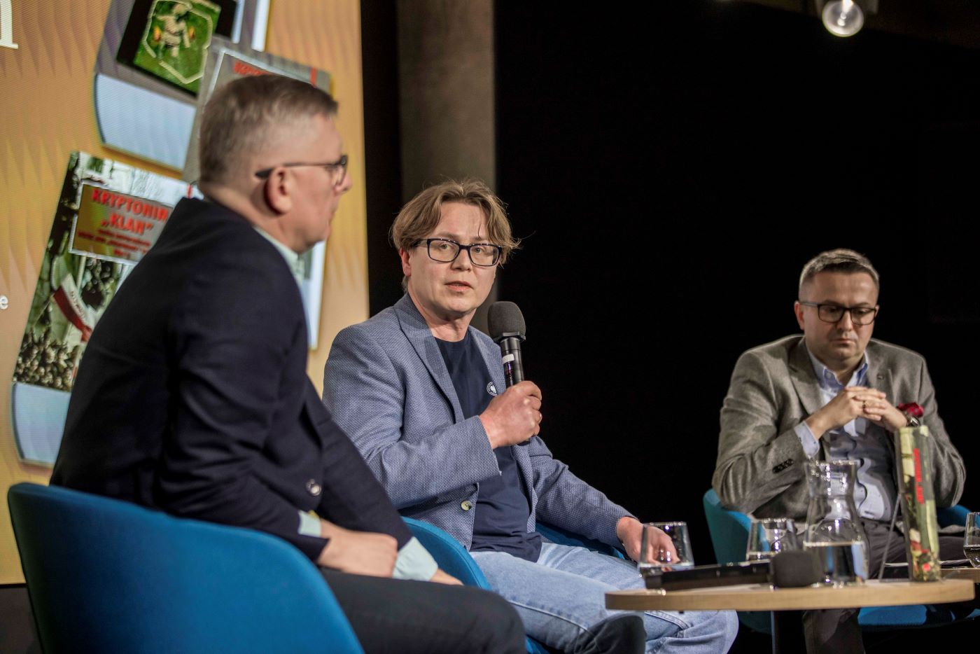 Dyskusja o serii wydawniczej „Kryptonim »Klan«. Służba Bezpieczeństwa wobec NSZZ »Solidarność« w Gdańsku” – Warszawa, 12 lutego 2025. Na zdj. po środku autor wyboru dokumentów Radosław Żydonik. Fot. Katarzyna Adamów (AIPN)