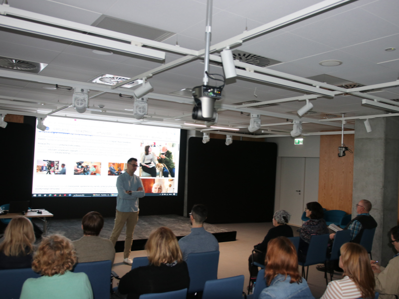 Warsztat dla nauczycieli prowadzili dr Grzegorz Łeszczyński i Artur Kłus z Wydział Projektów Multimedialnych i Notacji BEN IPN. Na co dzień pracują oni przy nagrywaniu i opracowywaniu relacji świadków. Mówili o tym: