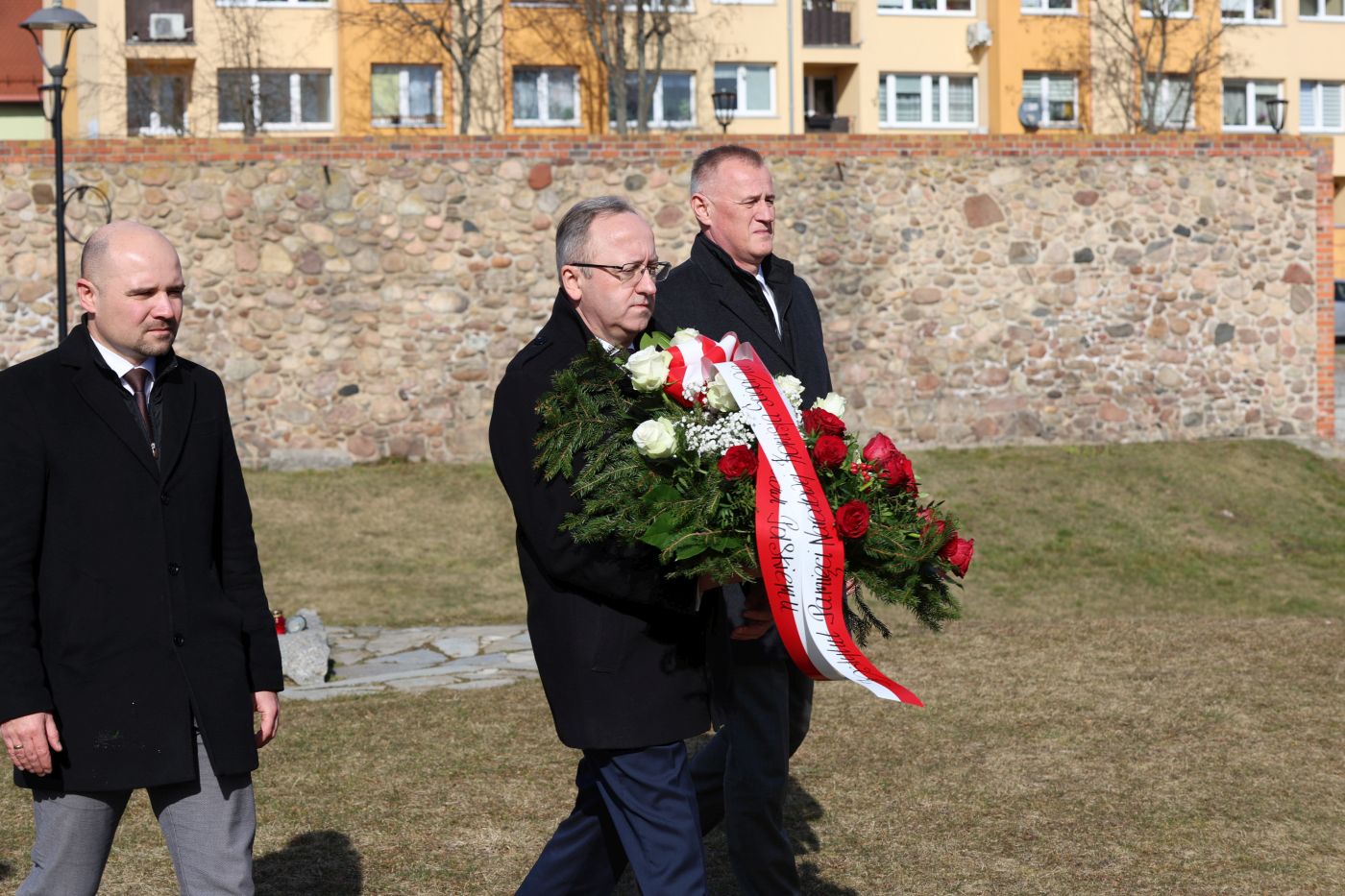 Przedstawiciele IPN złożyli kwiaty pod pomnikiem Pamięci Ofiar Lubina' 82 – Lubin, 4 marca 2025. Fot. Maciej Parysek (IPN)