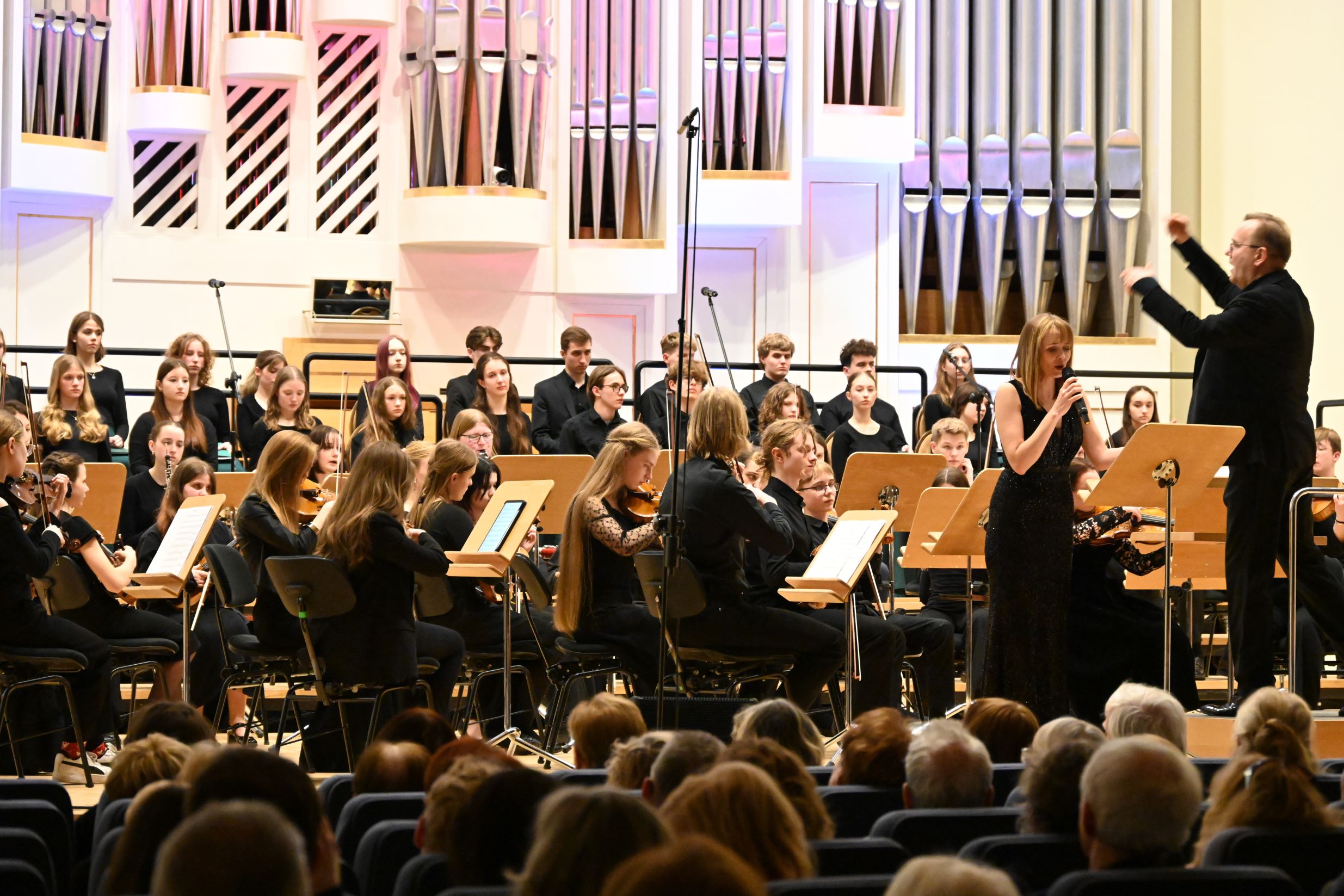 Krakowska Młoda Filharmonia – Orkiestra Zespołu Państwowych Szkół Muzycznych im. M. Karłowicza w Krakowie pod dyrekcją Tomasza Chmiela.
