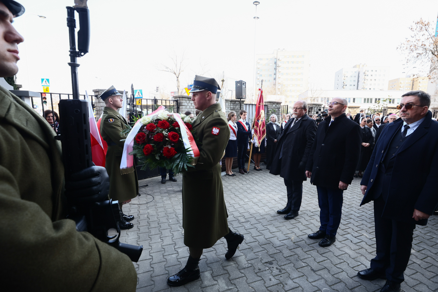 W wydarzeniu uczestniczyli m.in. szef Zarządu Obrony Powietrznej i Przeciwrakietowej, generał Brygady Kazimierz Dyński, dyrektor Biura Upamiętniania Walk i Męczeństwa IPN Adam Siwek, dyrektor warszawskiego oddziału IPN dr Tomasz Łabuszewski, burmistrz Dzielnicy Mokotów Rafał Miastowski, a także przedstawiciele władz lokalnych, instytucji oraz siostry ze Zgromadzenia Najświętszej Rodziny z Nazaretu.