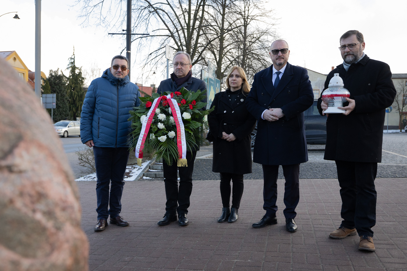 Przedstawiciele IPN złożyli kwiaty pod obeliskiem upamiętniającym Danutę Siedzikównę „Inkę” – Kartuzy, 17 marca 2025. Fot. Roman Jocher -