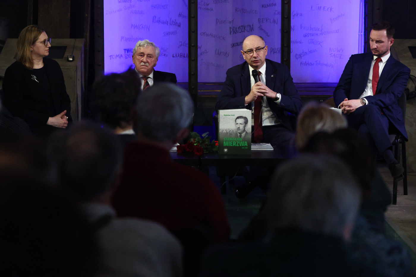 W rozmowie o książce oraz losach mecenasa Mierzwy udział wzięli: zastępca prezesa IPN dr Mateusz Szpytma, Radosław Kurek – pracownik Oddziałowego Archiwum IPN w Krakowie oraz Wojciech Mierzwa – syn bohatera dyskusji. Spotkanie poprowadziła Marzena Kruk, dyrektor Archiwum IPN.
