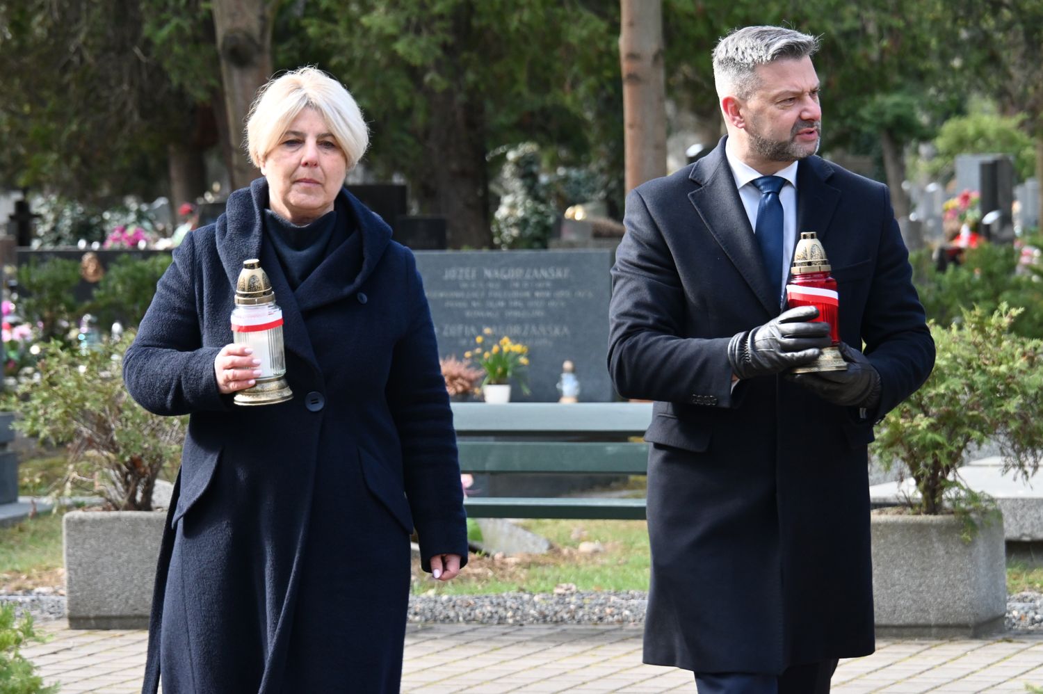 Uczciliśmy pamięć ofiar katastrofy smoleńskiej. Na zdj. dyrektor krakowskiego oddziału IPN dr hab. Filip Musiał i jego zastępca Cecylia Radoń – Kraków, 10 kwietnia 2025. Fot. Żaneta Wierzgacz (IPN) -