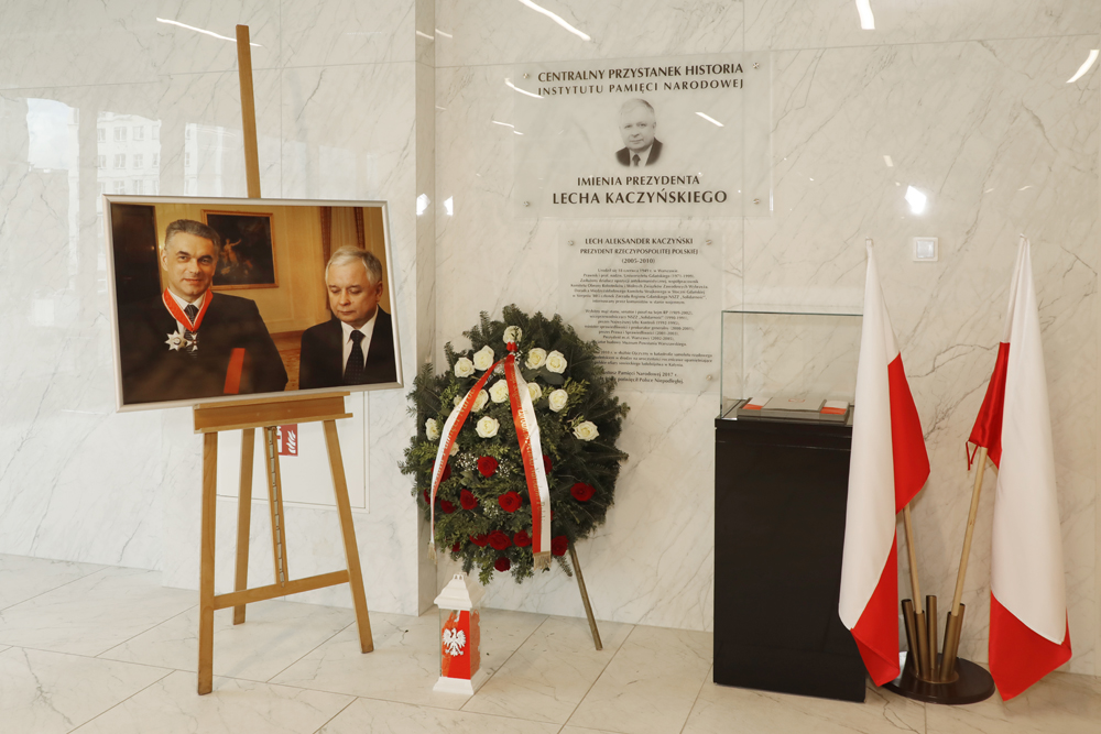 W Centralnym Przystanku Historia, którego patronem jest śp. Lech Kaczyński, przedstawiciele IPN z dr. hab. Karolem Polejowskim na czele oddali hołd Prezydentowi.