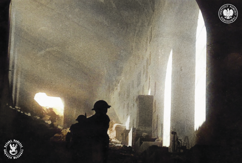 Żołnierze 12. Pułku Ułanów Podolskich należącego do 3. Dywizji Strzelców Karpackich pod dowództwem ppor. Kazimierza Gurbiela wkraczający do ruin klasztoru, 18 V 1944 r. fot. AIPN -