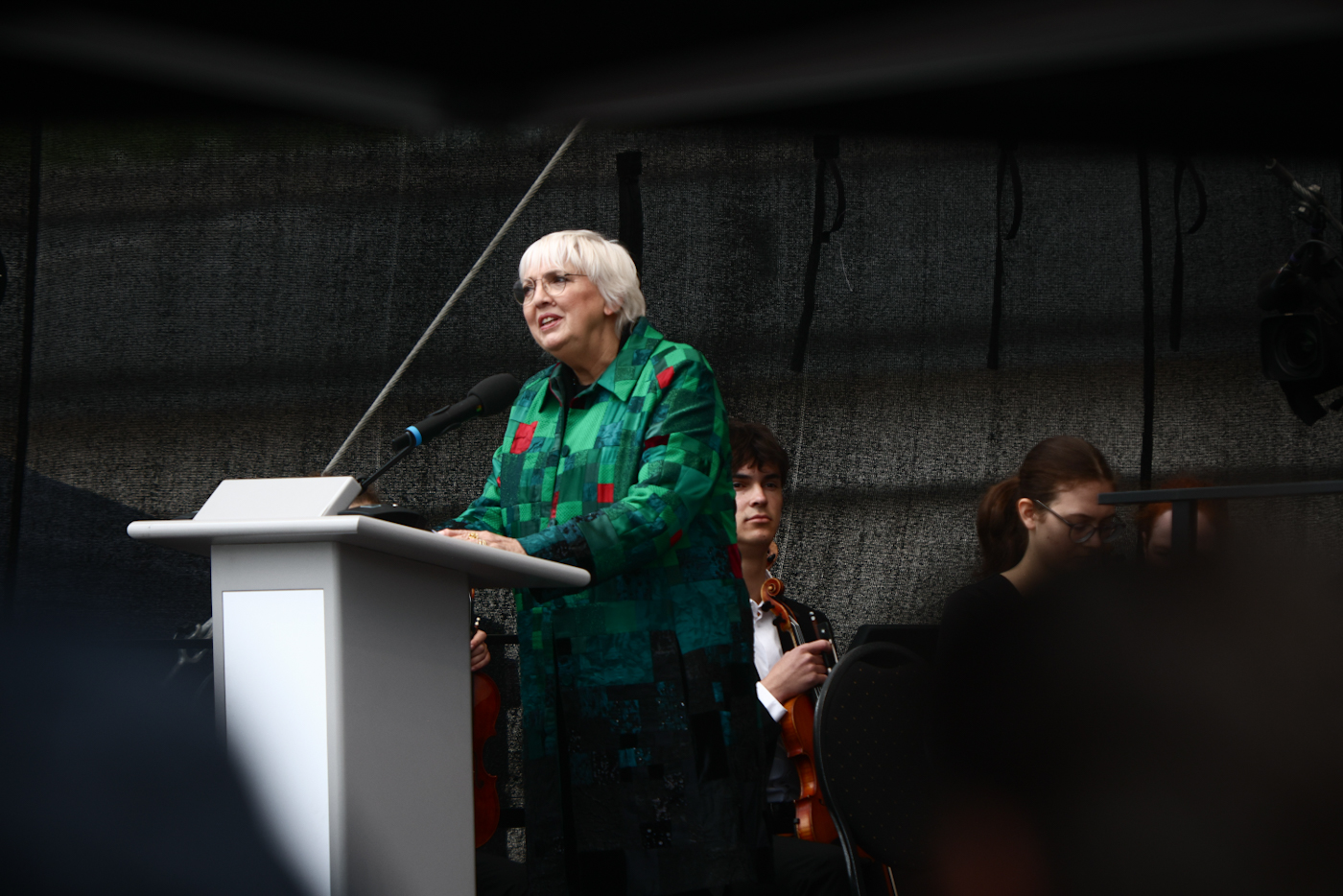 Dr Andrea Genest, dyrektorka Miejsca Pamięci Ravensbrück, oraz Ambra Laurenzi, przewodnicząca Międzynarodowego Komitetu Ravensbrück, rozpoczęły uroczystości upamiętniające 80. rocznicę wyzwolenia obozu. W trakcie wydarzenia głos zabrała Ingelore Prochnow, była więźniarka, która podzieliła się wspomnieniami z czasu pobytu w obozie. Jej wystąpienie było osobistym świadectwem trudnych doświadczeń, a także więzi, jakie łączyły kobiety w Ravensbrück.