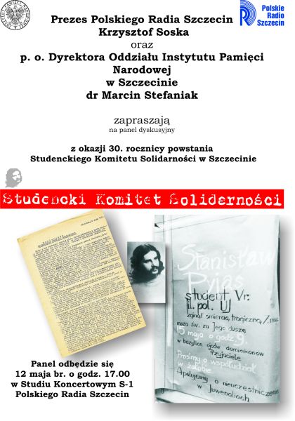 Instytut Pamięci Narodowej Oddział w Szczecinie oraz Polskie Radio Szczecin przygotowały 12 maja spotkanie z twórcami szczecińskiego Studenckiego Komitetu Solidarności – Wojciechem Klukowskim, Jackiem Zakrzewskim, Elżbietą Rynasiewicz i Dariuszem Rawickim. Spotkanie odbyło się w studiu koncertowym S-1.