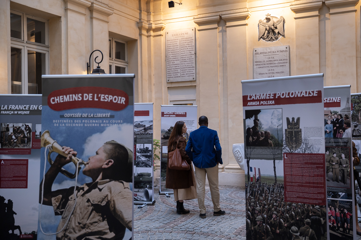 Wystawa „Szlaki Nadziei. Odyseja wolności” w Bibliotece Polskiej w Paryżu. Fot. Hanna Zaworonko/ Biblioteka Polska w Paryżu