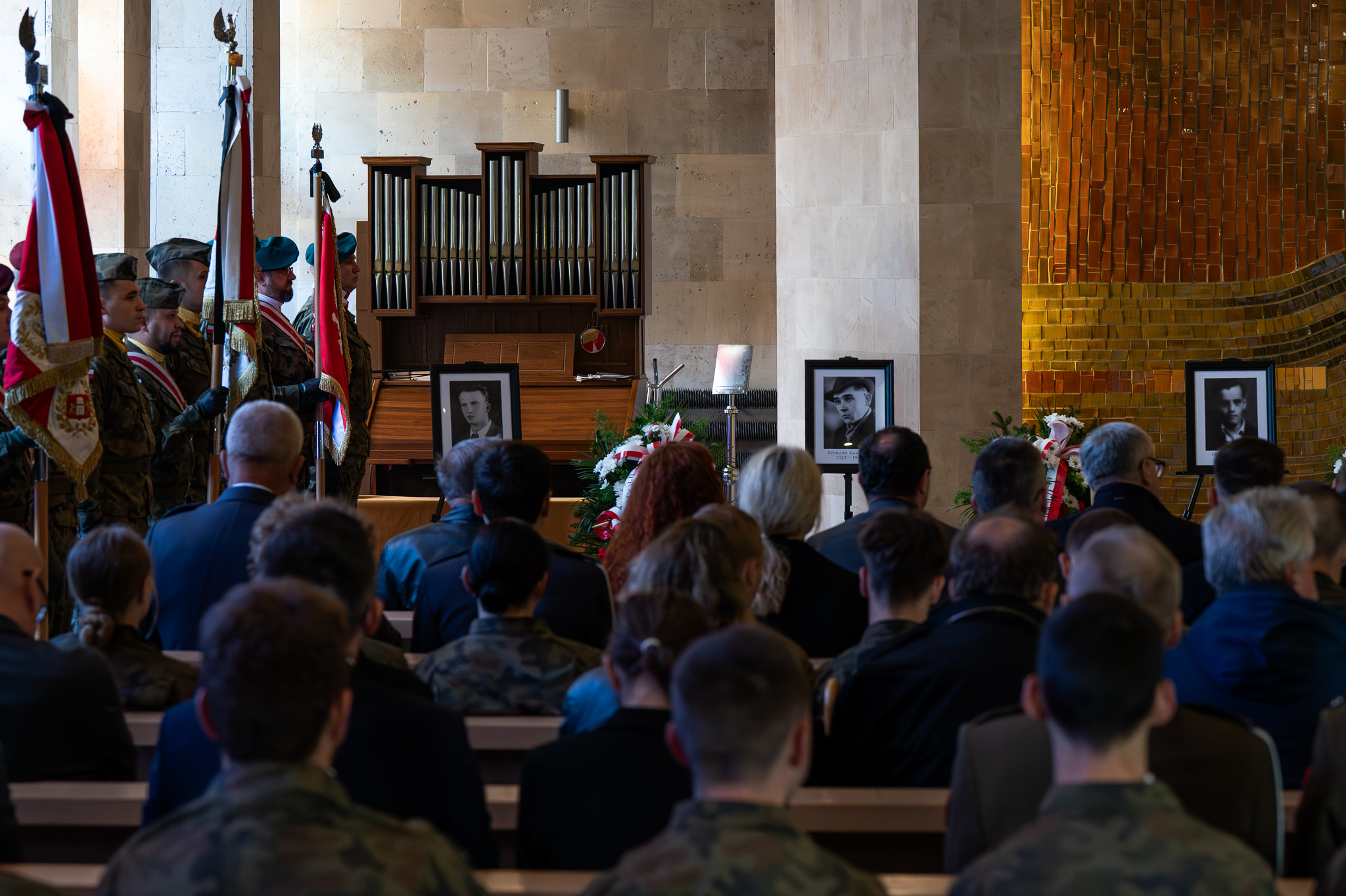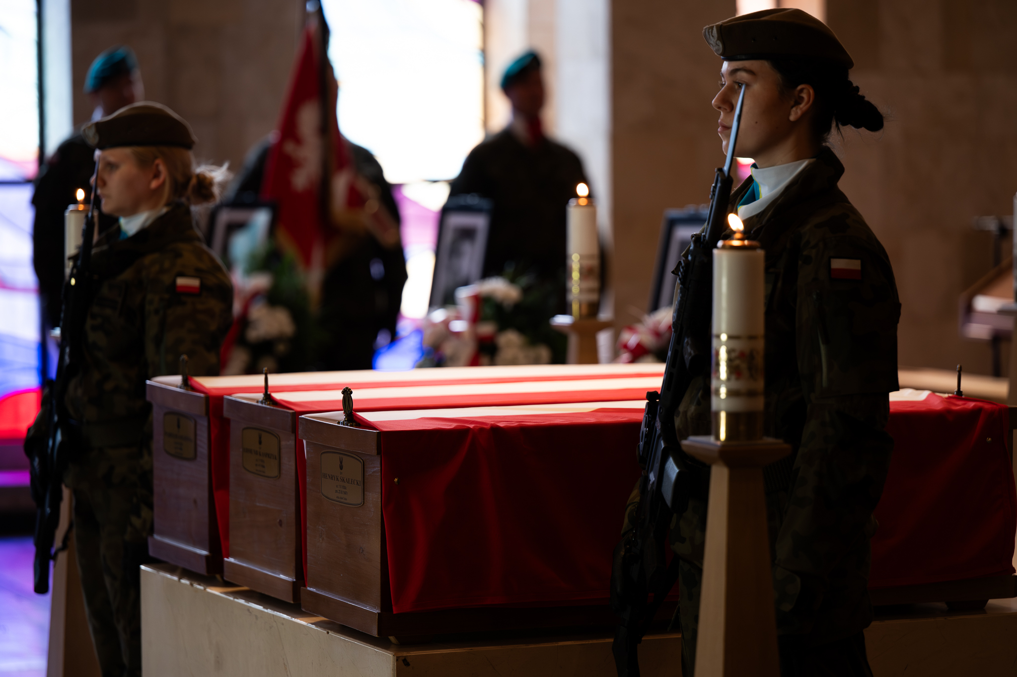 Uroczystość pogrzebowa Władysława Januszewskiego, Edmunda Kasprzyka oraz Henryka Skałeckiego, żołnierzy podziemia niepodległościowego w Katowicach
