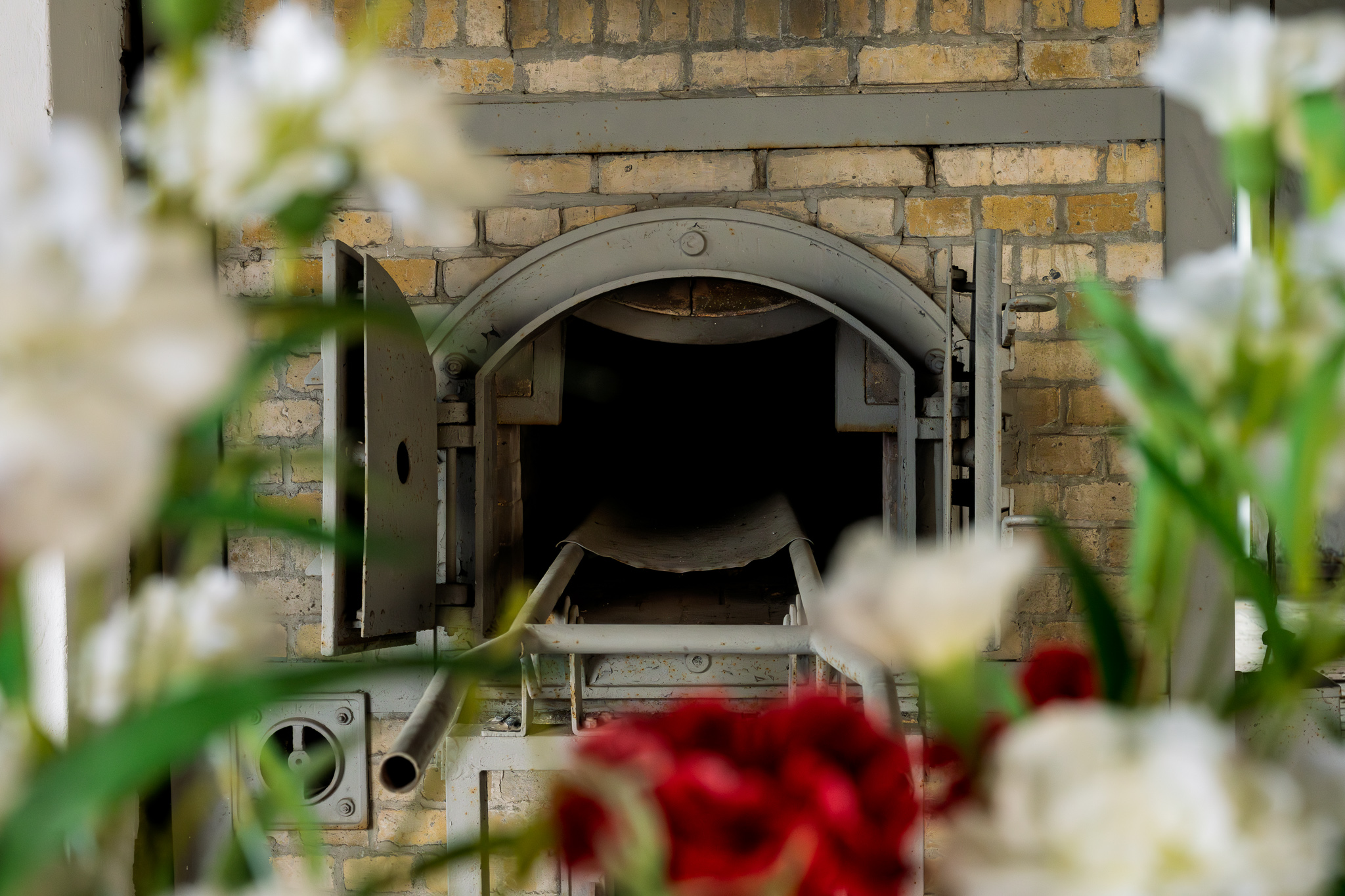 Z bunkra przeszliśmy do budynku krematorium, w którym znajdują się trzy piece krematoryjne. Tu zapaliliśmy znicz i odmówiliśmy krótką modlitwę za wszystkie zmarłe więźniarki.