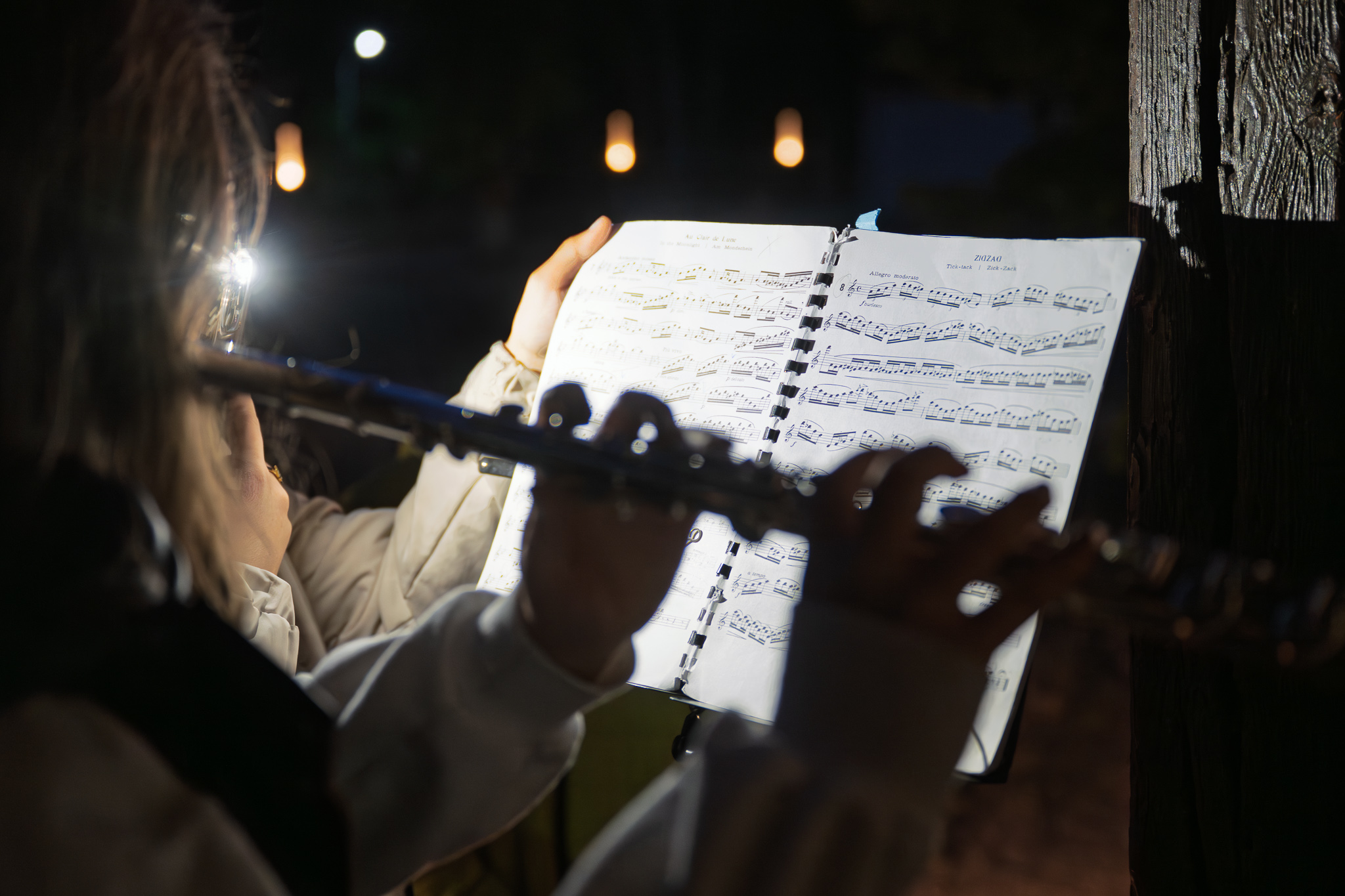 Gdy nastał zmrok, a latarki i latarnie rzucały złote smugi na ścieżki pamięci, zebraliśmy się na wieczornicy muzycznej. Choć podróż długa, a zmęczenie ciążyło powiekom, dźwięki gitary i fletu uniosły w górę polskie pieśni – harcerskie, patriotyczne – jak ptaki wolności, które więźniarki mogły tylko śnić. W tej muzyce ożyły ich marzenia, ich siła, ich nieugięty duch.