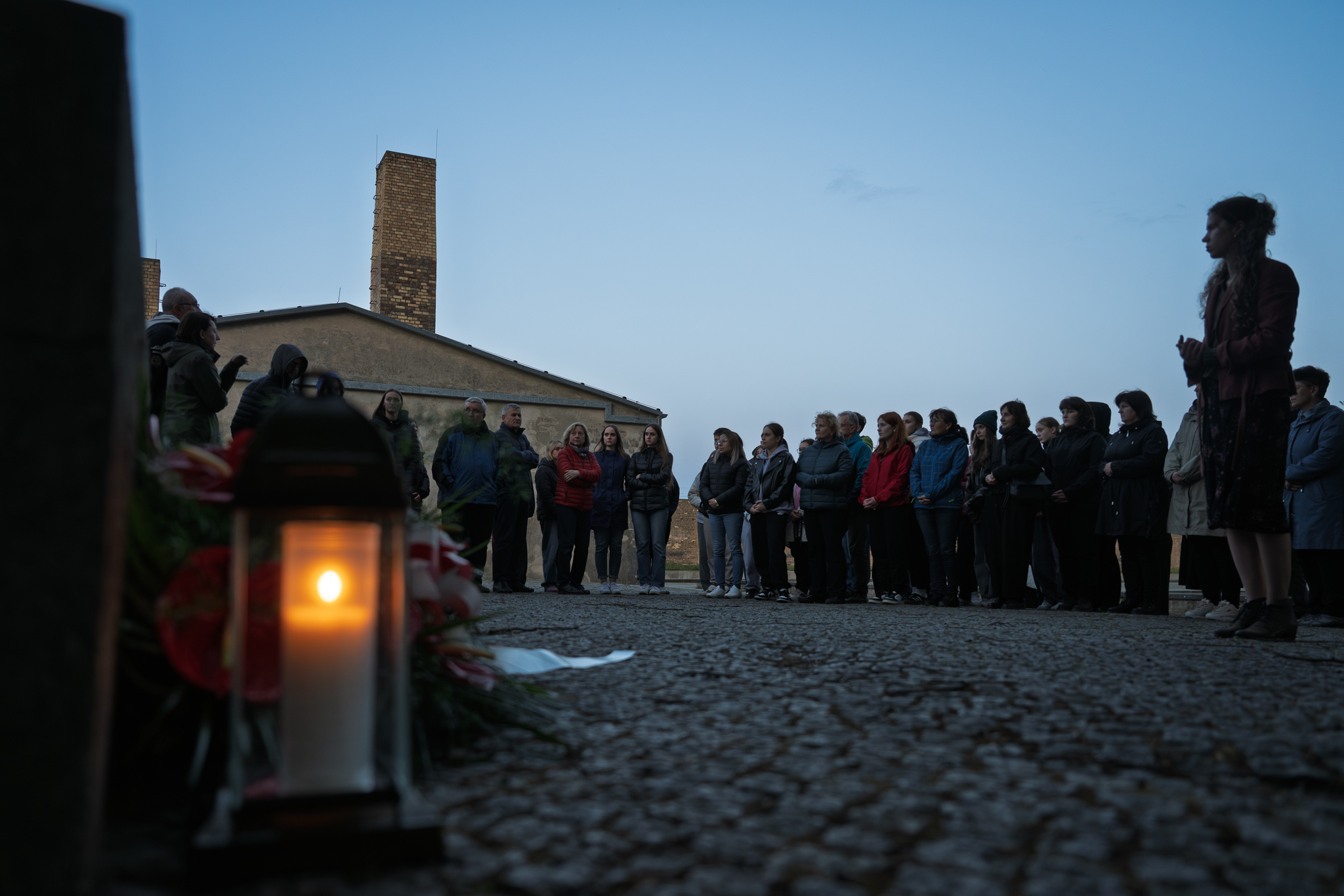Zgodnie z tradycją naszych wypraw do tego miejsca bólu, rozpoczęliśmy od złożenia hołdu więźniarkom KL Ravensbrück – duszom, które w mroku obozu tkały nadzieję z nici odwagi. Przy Totengang – Przejściu Zmarłych, gdzie ziemia wciąż pamięta ich ostatnie chwile, a wiatr niesie echo niewypowiedzianych słów, złożyliśmy wiązankę biało-czerwonych kwiatów. Zapłonęły znicze, rzucając ciepłe światło na mrok przeszłości. Wśród szumiących drzew nad jeziorem Schwedt, którego fale wciąż tulą prochy pomordowanych, odmówiliśmy modlitwę. Ich imiona, choć niewypowiedziane, rozbrzmiewały w sercach, łącząc nas z tymi, które odeszły.
