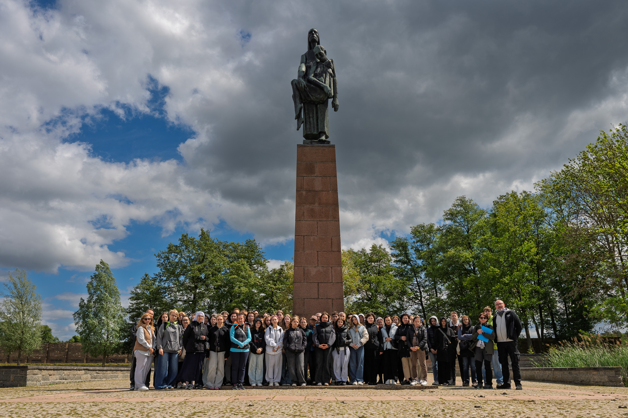 Swoją wędrówkę zakończyliśmy pod tablicą narodową upamiętniającą wszystkie Polki – więźniarki FKL Ravensbrück oraz przy pomniku „Niosąca” – tam również zapaliliśmy znicze.