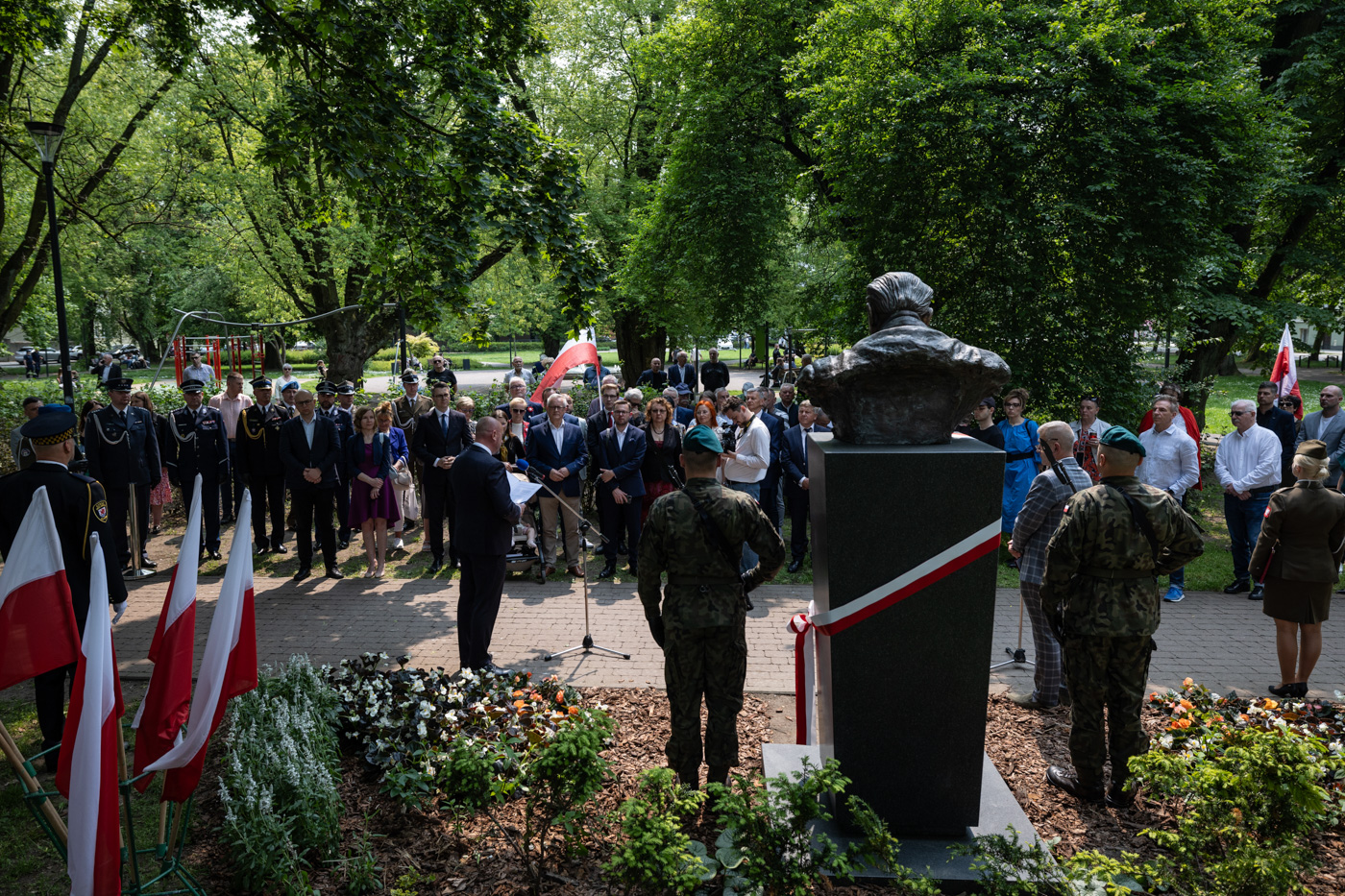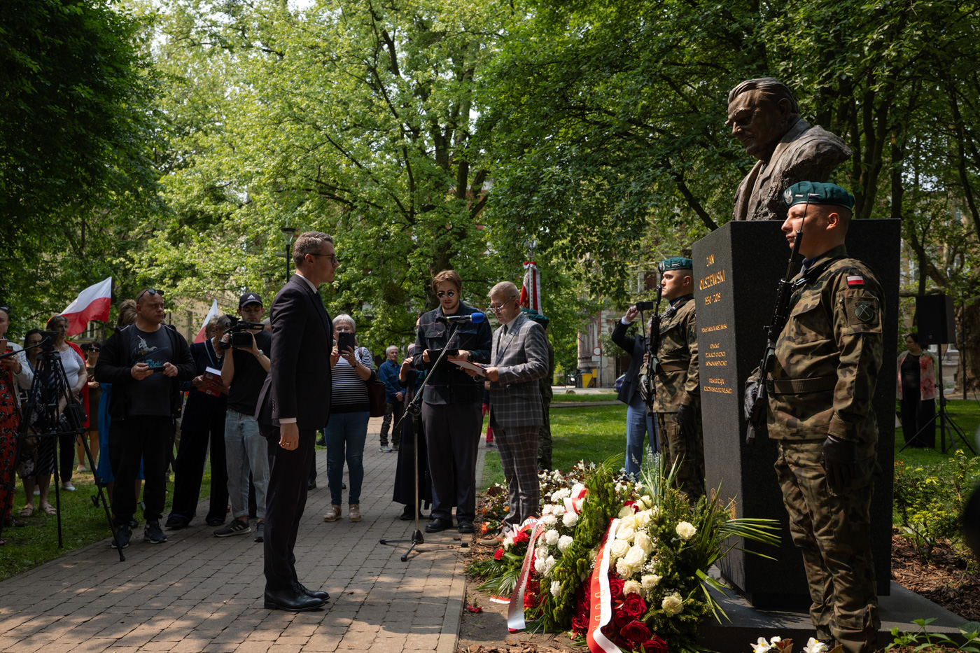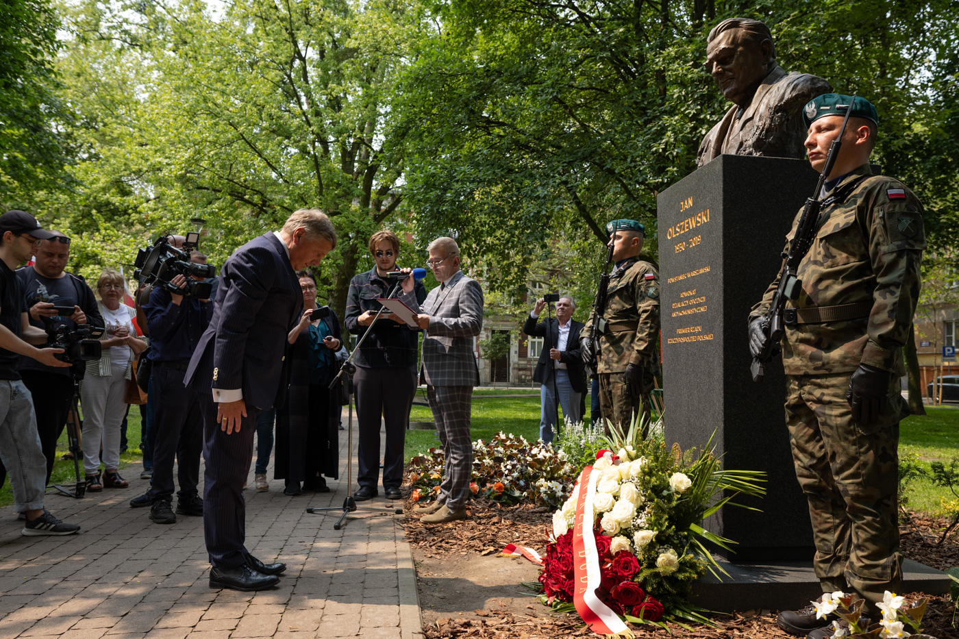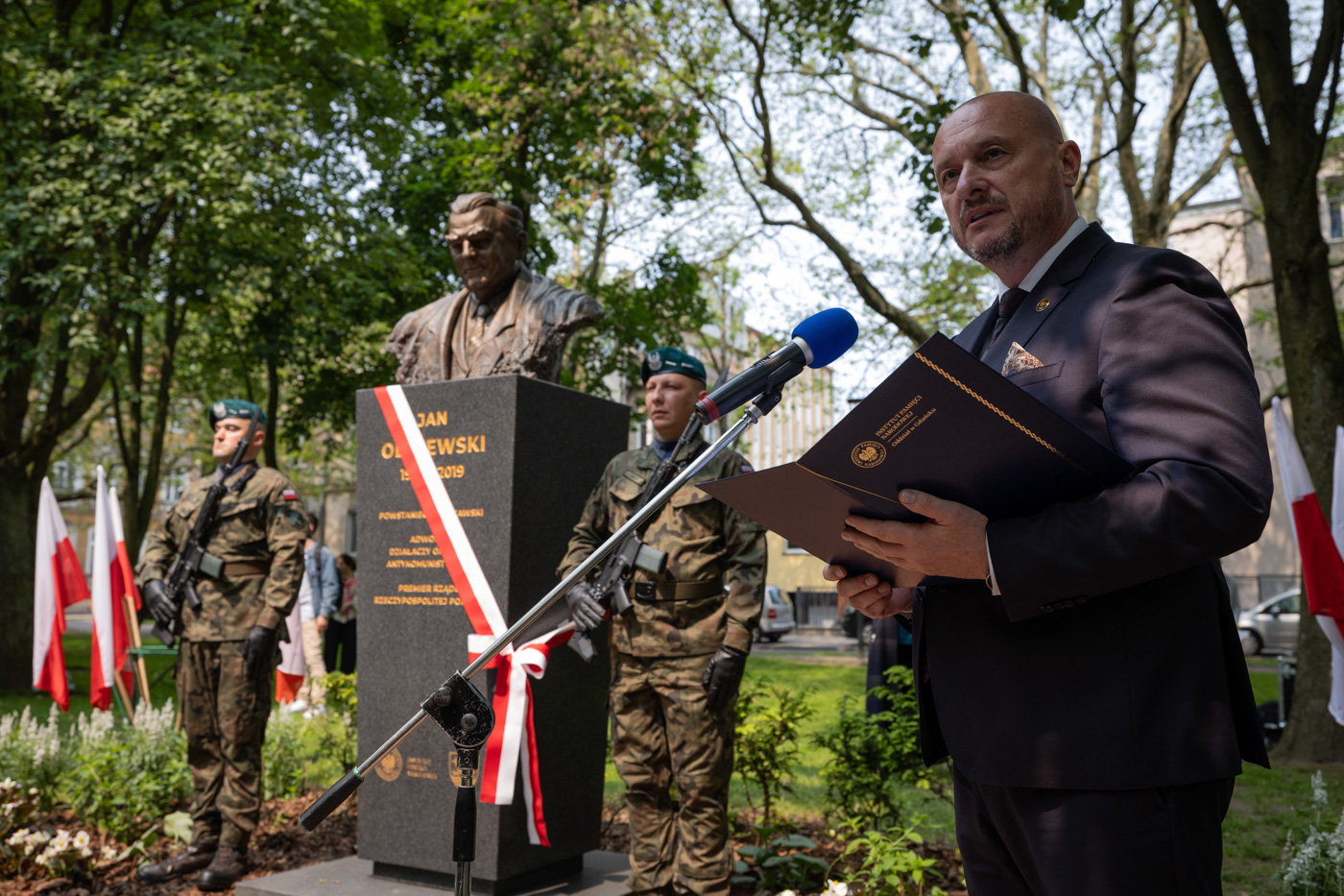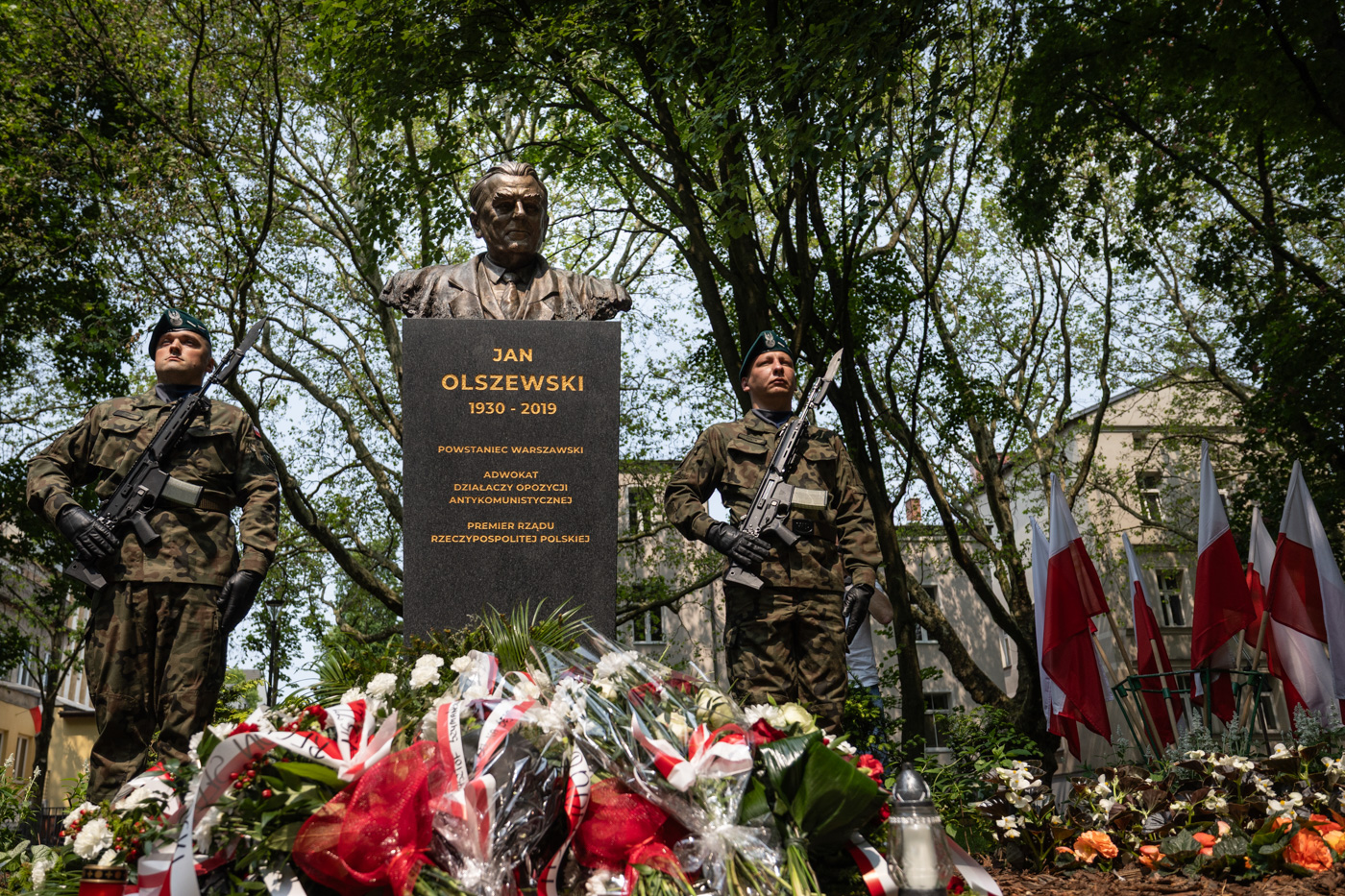 Wśród przemawiających znaleźli się również Piotr Karczewski, Doradca Prezydenta RP, Piotr Muller, Poseł do Parlamentu Europejskiego oraz Krystyna Danilecka-Wojewódzka, Prezydentka Miasta Słupska. Odsłonięcia pomnika dokonali wspólnie Waldemar Szulc, Europoseł Piotr Muller, Prezydentka Miasta Słupska Krystyna Danilecka-Wojewódzka oraz Tadeusz Bobrowski – inicjator wzniesienia upamiętnienia. Pomnik został poświęcony przez kapelana Garnizonu Słupsk, księdza kapitana Arnolda Kulińskiego. Po uroczystym złożeniu wieńców przez delegacje, wydarzenie zwieńczył występ artystyczny z repertuarem pieśni powstańczych. Budowę pomnika współfinansował Instytut Pamięci Narodowej. Uroczystość stanowiła ważny gest pamięci wobec postaci premiera Jana Olszewskiego oraz wartości, które reprezentował.