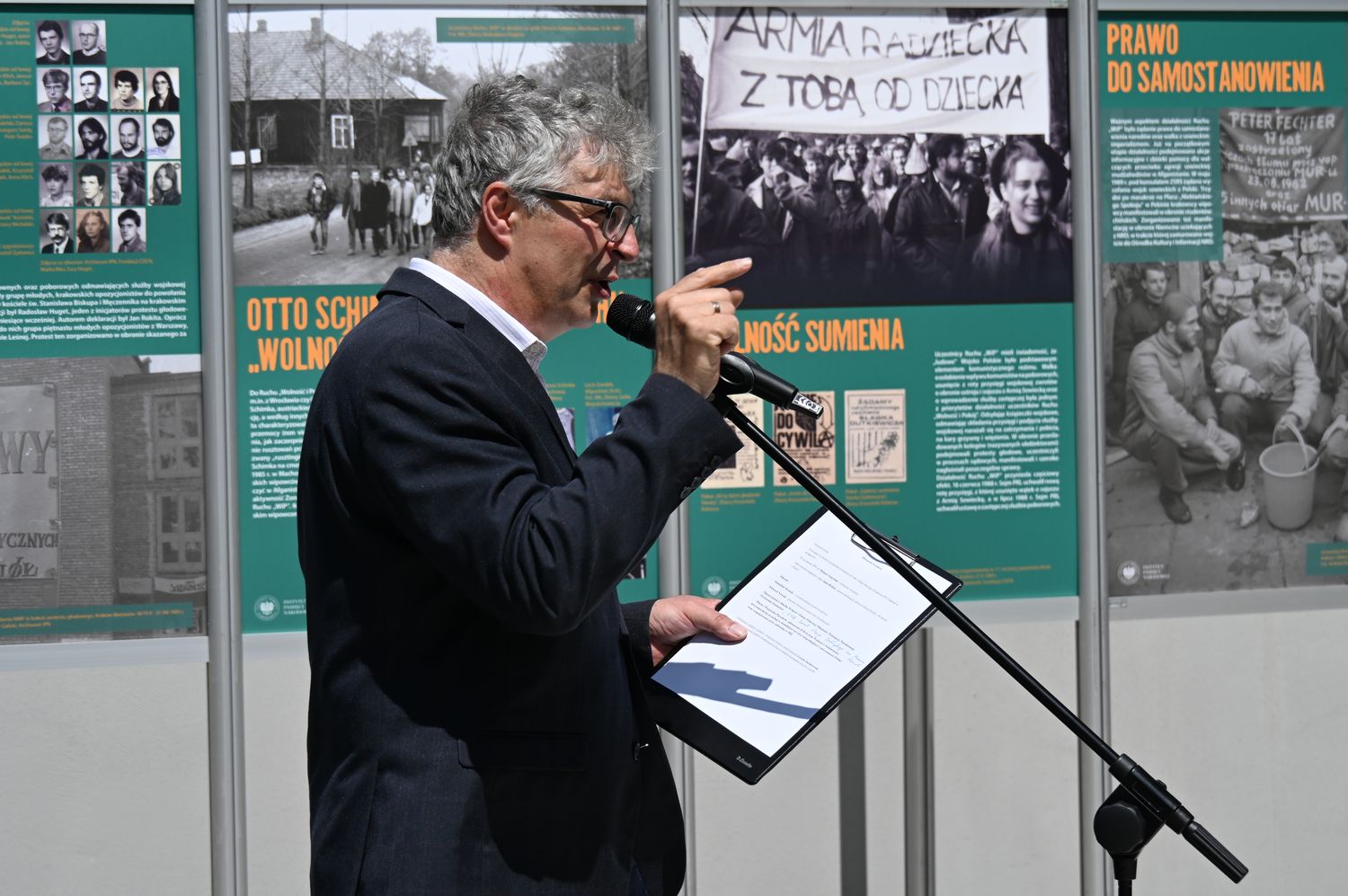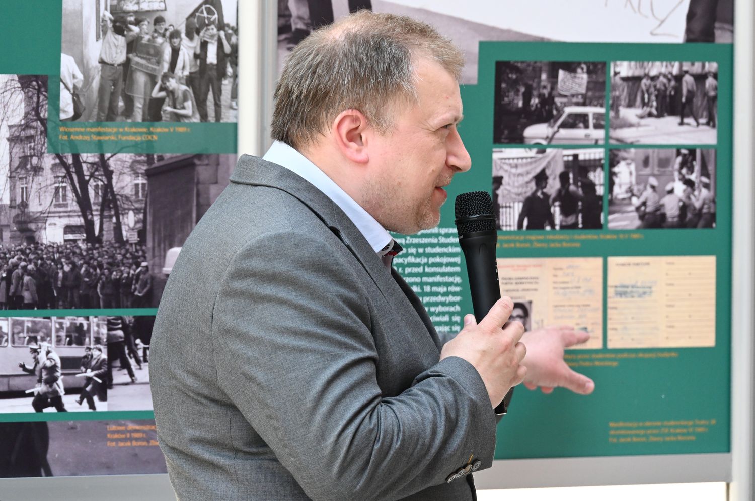 Odtworzyliśmy także, nagrane specjalnie na tę okazję, krótkie wystąpienie Jana Marii Rokity, twórcy deklaracji założycielskiej WiP, który wspominał okoliczności powstania Ruchu. O wystawie opowiedział zebranym jej autor dr Andrzej Malik z krakowskiego oddziału IPN. Leszek Jaranowski, dawny działacz podziemnego ruchu wydawniczego, redaktor, drukarz i kolporter wydawnictw bezdebitowych, zaprezentował powielacz i inne urządzenia poligraficzne, używane przez opozycjonistów w czasach PRL.
