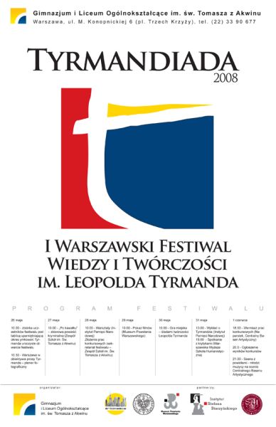 W dniach 26 maja – 1 czerwca 2008 roku odbywać się będzie I Warszawski Festiwal Wiedzy i Twórczości im. Leopolda Tyrmanda „Tyrmandiada". Inicjatywa skierowana jest do młodzieży gimnazjalnej, ponadgimnazjalnej, a także wszystkich zainteresowanych twórczością Leopolda Tyrmanda. Instytut Pamięci Narodowej objął honorowy patronat nad imprezą. Wśród działań festiwalu przewidziane są m.in. wykłady i warsztaty prowadzone przez pracowników Oddziałowego Biura Edukacji Publicznej IPN w Warszawie.