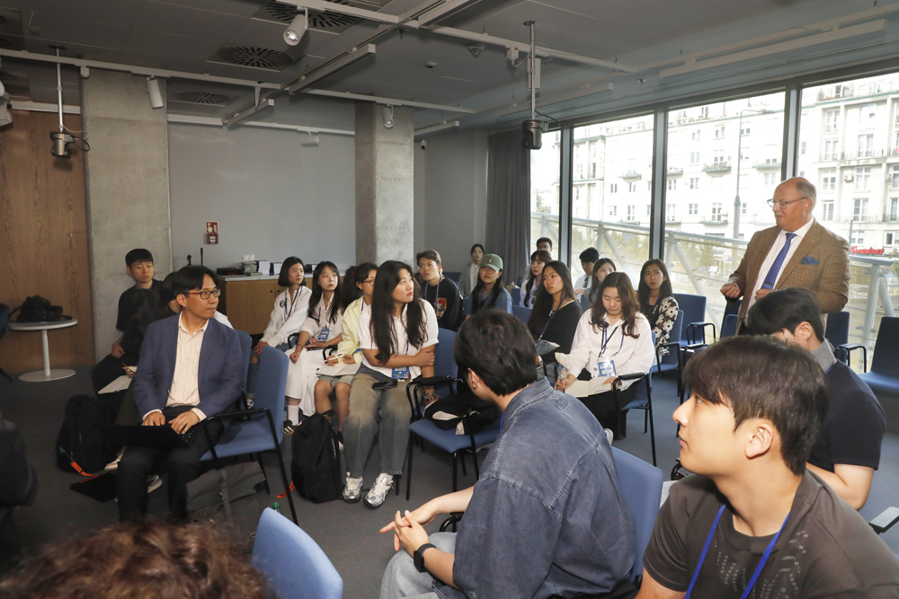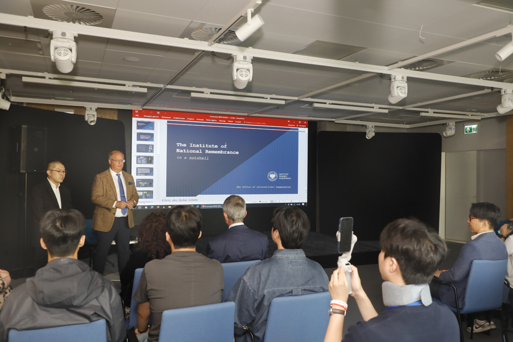 To już kolejna wizyta gości z Korei. Tym razem mieli oni okazję zapoznać się ze strukturą i misją IPN, o których opowiedział zastępca dyrektora BWM dr Mateusz Marek. Dr Marek omówił ponadto najważniejsze przedsięwzięcia międzynarodowe Instytutu, w tym flagowy projekt edukacyjno-komemoratywny pt. „Szlaki Nadziei. Odyseja Wolności”.
