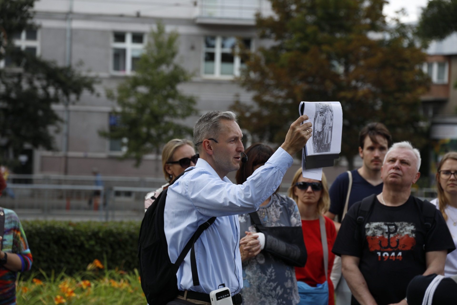 Spacer historyczny „Nie tylko »Zieleniak«. Śladami zbrodni na ludności cywilnej powstańczej Ochoty” – Warszawa, 2 sierpnia 2025. Fot. Krzysztof Kapłon (IPN) -