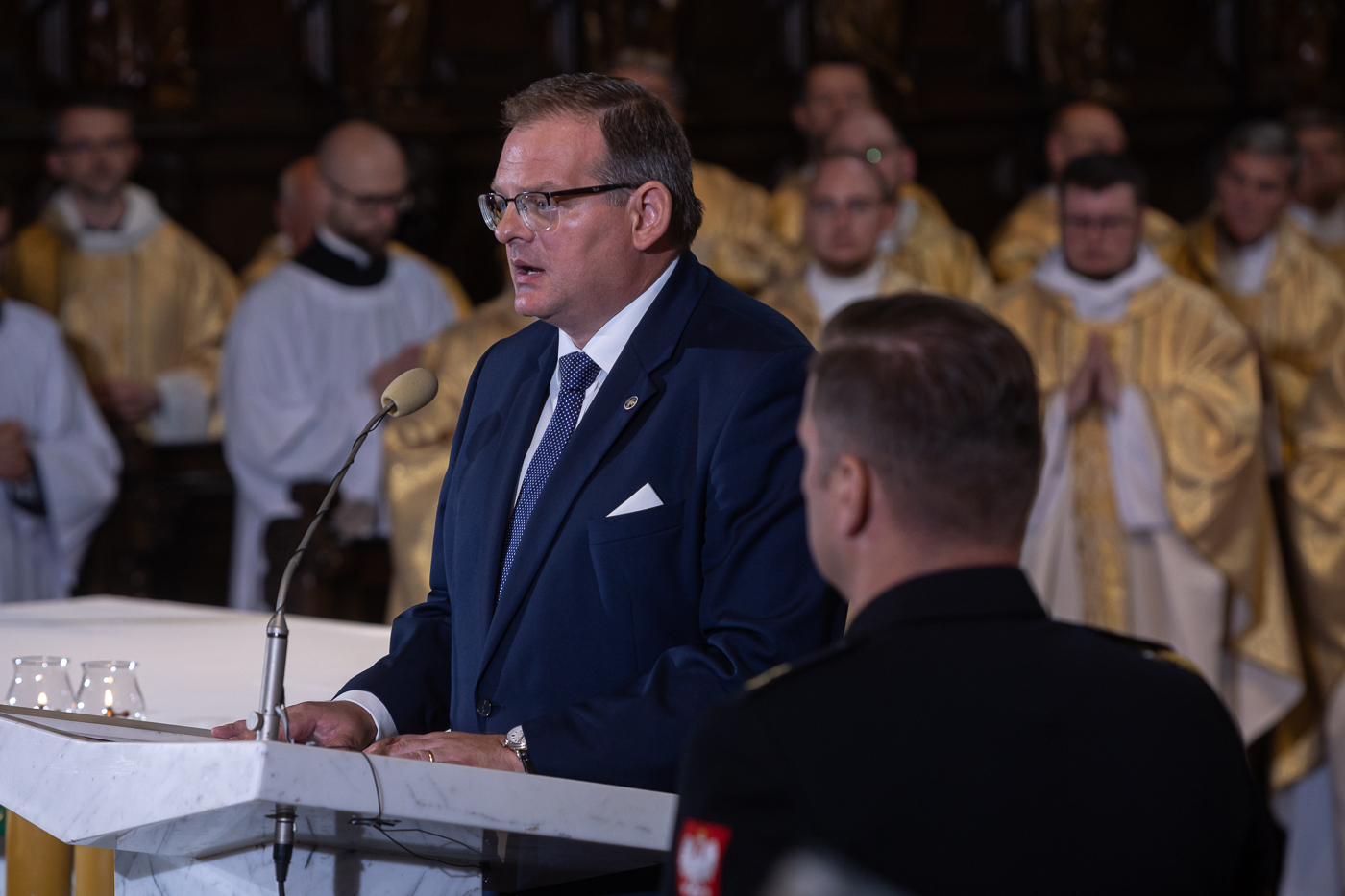 Msza Święta w intencji Ojczyzny i Prezydenta RP w Bazylice Archikatedralnej św. Jana Chrzciciela w Warszawie, po zaprzysiężeniu Karola Nawrockiego na urząd Prezydenta RP – 6 sierpnia 2025. Fot. Sławek Kasper (IPN)