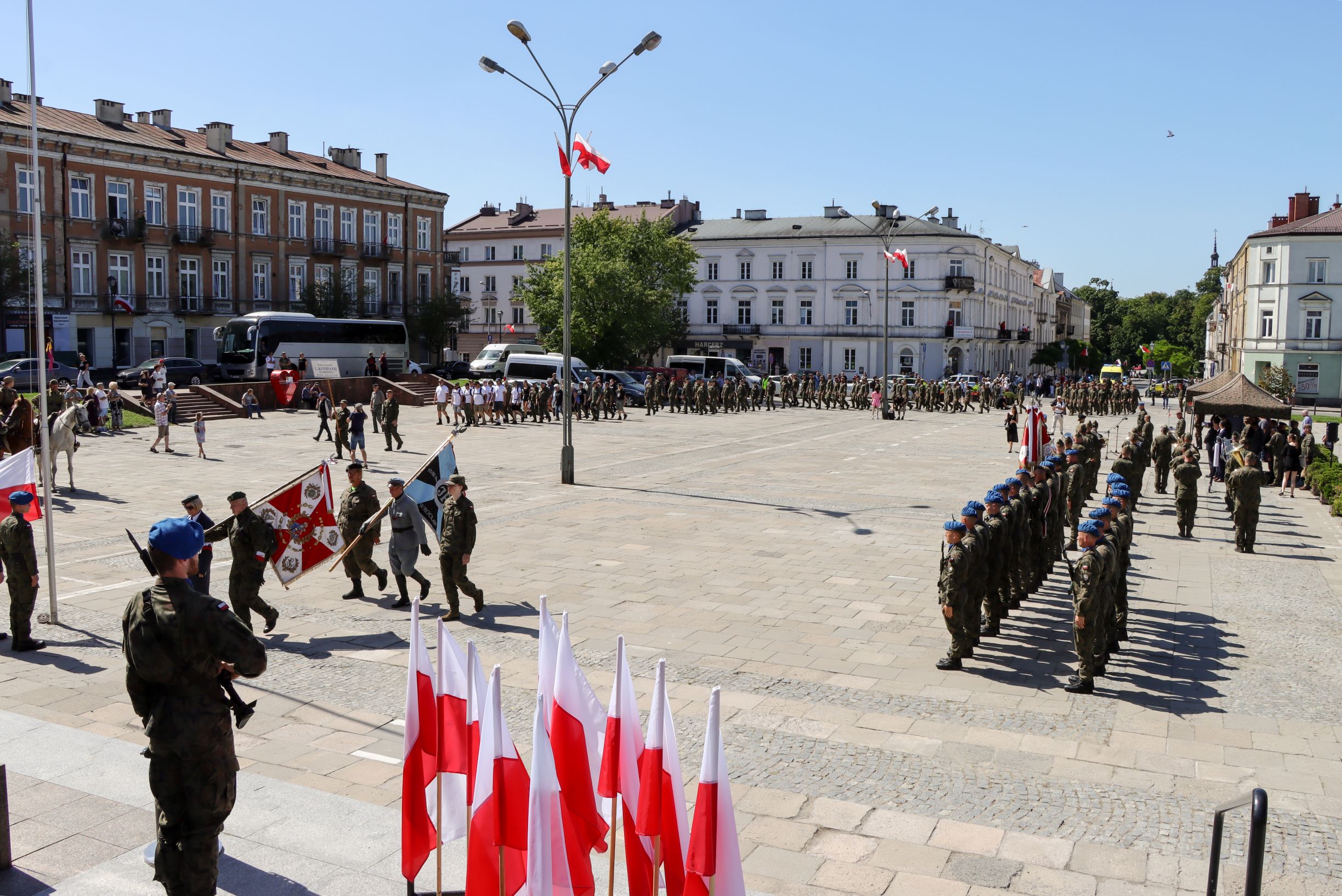 Do Kielc „Kadrówka” wkroczyła w samo południe, przy akompaniamencie orkiestry wojskowej. Po złożeniu kwiatów na grobach legionistów na Cmentarzu Starym oraz pod Pomnikiem Czynu Legionowego przy Wojewódzkim Domu Kultury, uczestnicy przeszli na plac Wolności, gdzie odbyły się główne uroczystości. Wręczono odznaki i nagrody marszowe, a także przeprowadzono apel pamięci i salwę honorową. W wydarzeniu wzięli udział przedstawiciele władz samorządowych oraz dowódcy jednostek wojskowych. Instytut Pamięci Narodowej reprezentowali Jan Józef Kasprzyk oraz naczelnik Delegatury IPN w Kielcach dr Robert Piwko.
