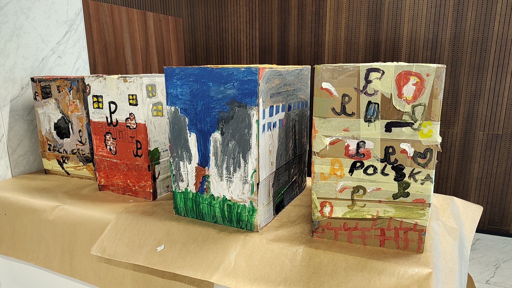 Podczas zajęć plastycznych tworzyli murale o tematyce patriotycznej, papierowe drzewa w barwach narodowych, a także rysunki inspirowane tematyką zajęć (przygody Misia Wojtka, przedwojenna Warszawa, plakat filmu historycznego itp).