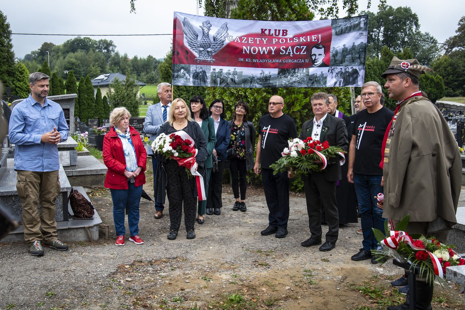 Przed mszą dr Musiał złożył kwiaty na grobie założyciela PPAN kpt. Stanisława Pióro i pod pomnikiem ks. Gurgacza na terenie Urzędu Gminy w Łabowej.