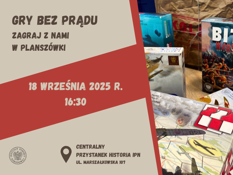 Uczestnicy warsztatów „Gry bez prądu” zagrają w gry planszowe stworzone przez Instytut Pamięci Narodowej. Każda z nich przenosi w inny, fascynujący okres historii, np. „Kolejka” – zaprasza w rzeczywistość lat 80., gdzie codzienne zakupy to nie lada wyzwanie. Zadaniem gracza jest zdobycie wszystkich towarów z listy zakupów. Problem polega na tym, że półki są puste, a dostawy nieprzewidywalne...