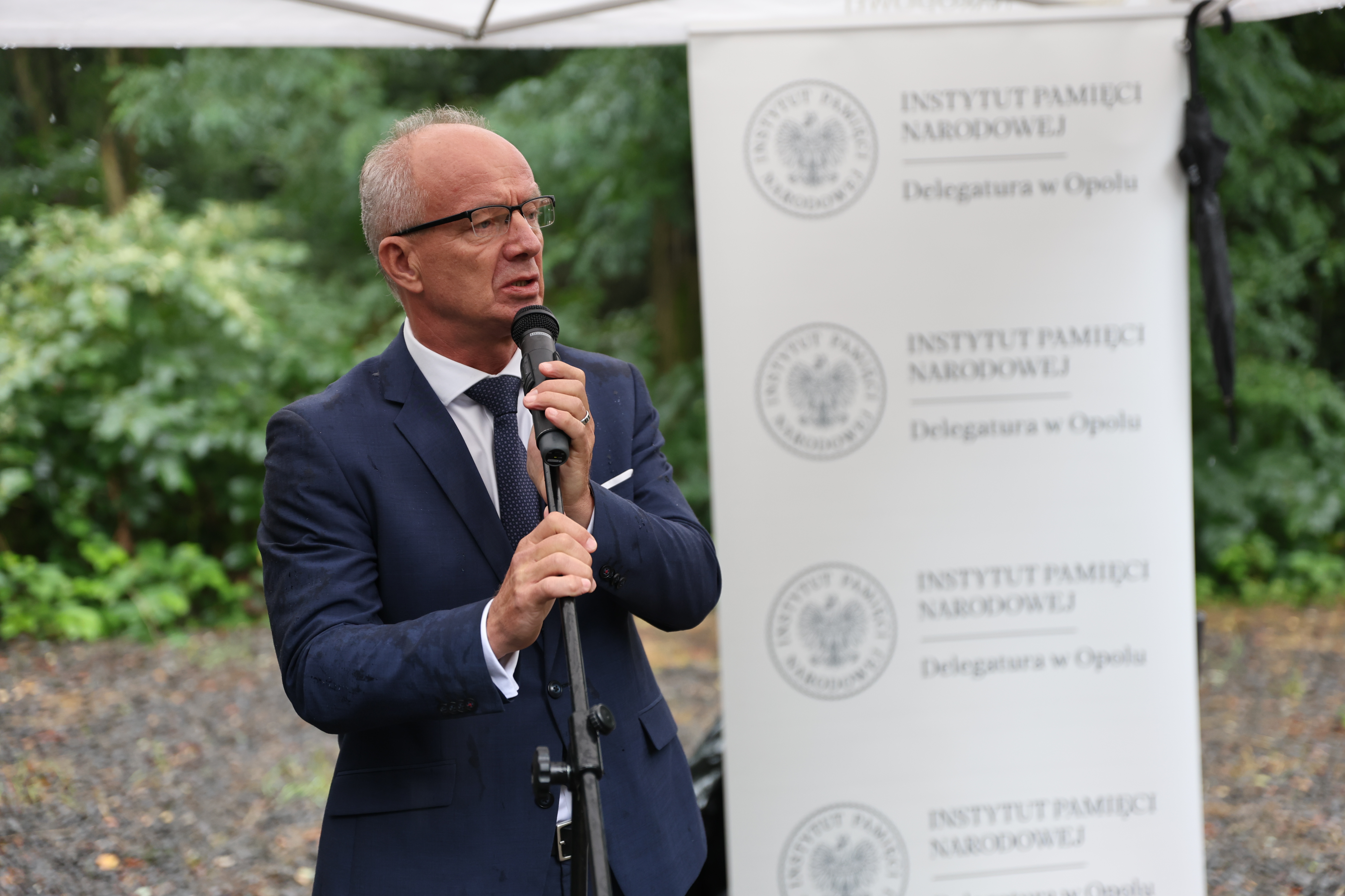 – Przed laty wyruszyli na wojnę, by podjąć walkę ze znienawidzonym systemem komunistycznym. Uczynili tak dlatego, bo nie godzili się na to, co dzieje się w Polsce. Uczynili tak dlatego, że tak podpowiadało im sumienie, bo tak podpowiadał im patriotyzm, który został wyniesiony z ich rodzinnych domów. Głęboko wierzyli, że walka, którą podejmują, przyniesie pożądany skutek. Przyniesie zwycięstwo. Ale tutaj, na Polanie Śmierci koło Starego Grodkowa ich młodzieńcze ideały zostały wysadzone w powietrze razem z nimi. Zostały rozstrzelane salwami karabinów maszynowych. I na kilkadziesiąt lat zakopane pod ziemią […]. Odnalezieni na tej polanie w 2016 roku młodzi żołnierze, dzięki badaniom DNA, budzą się do życia, odzyskują swoje imiona, nazwiska, pseudonimy, twarze. To Polska budzi ich do życia”