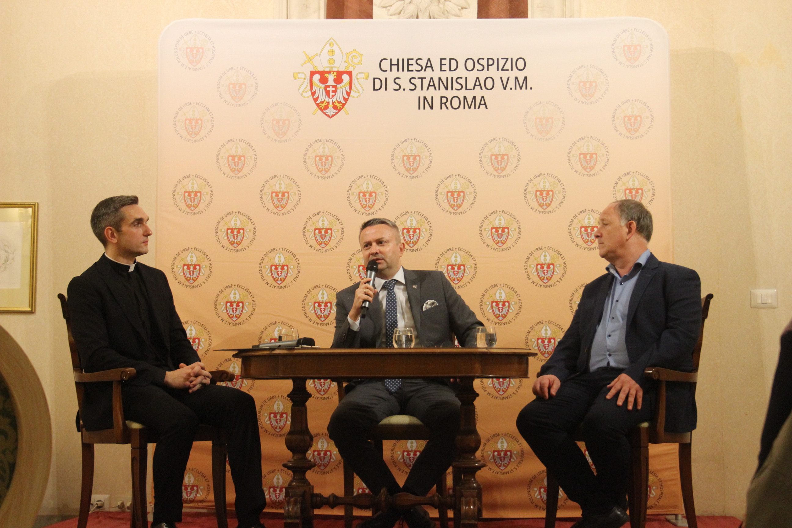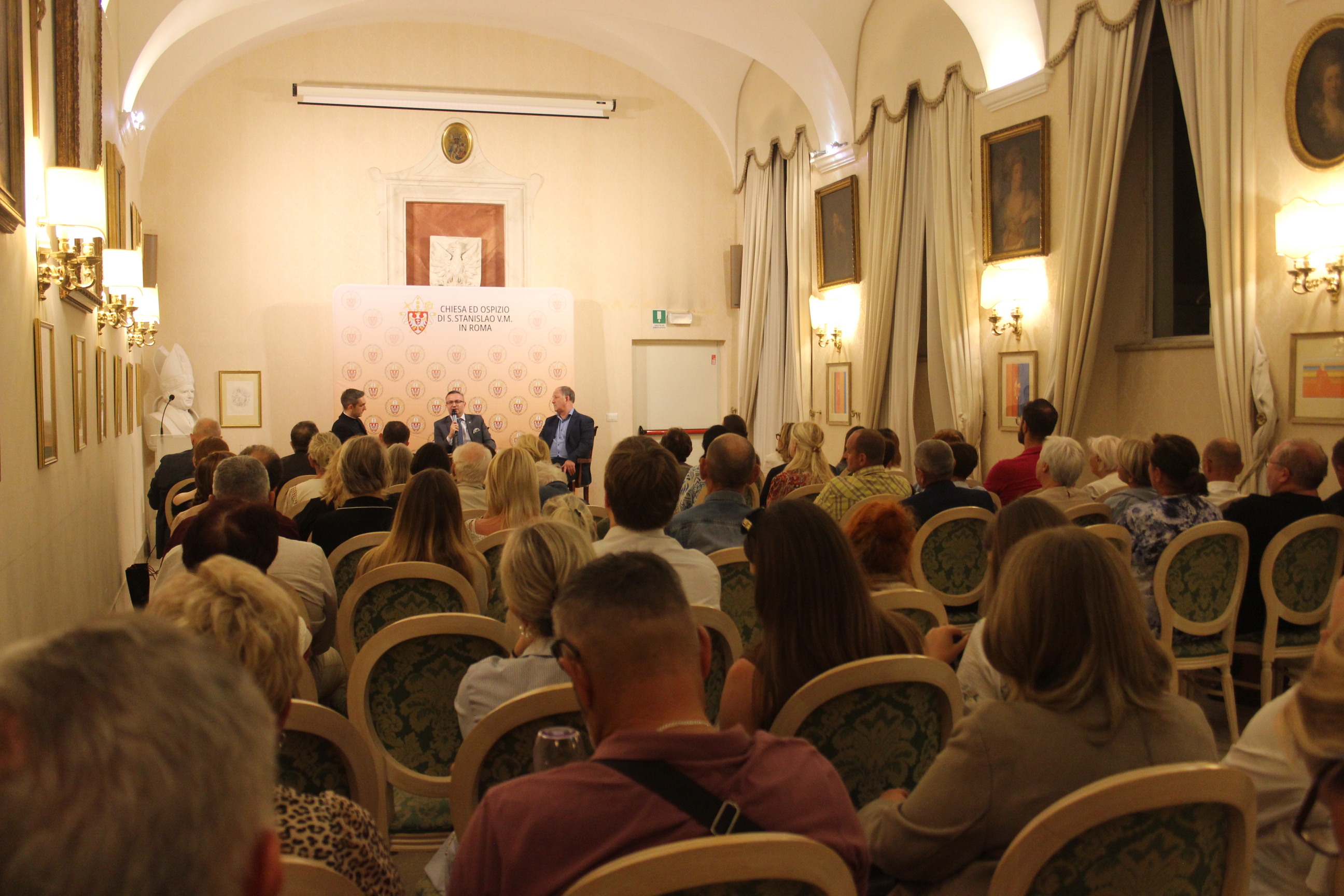 W dyskusji moderowanej przez ks. Tomasza Jarosza – administratora Kościoła i Hospicjum – wzięli udział dr Sebastian Pilarski, dyrektor Biura Badań Historycznych IPN oraz dr Grzegorz Majchrzak, pracownik BBH IPN. Spotkanie zgromadziło liczne grono Polaków rezydujących na stałe lub czasowo w Rzymie, turystów i pielgrzymów. Pośród wielu gości warto wyszczególnić Adama Kwiatkowskiego, Ambasadora RP przy Stolicy Apostolskiej, Justynę Kałużę, Wicekonsul RP w Rzymie. Obecni byli również przedstawiciele świata nauki m.in.: o. prof. Markek Inglot SJ oraz ks. prof. Jan Mikrut z Papieskiego Uniwersytetu Gregoriańskiego.