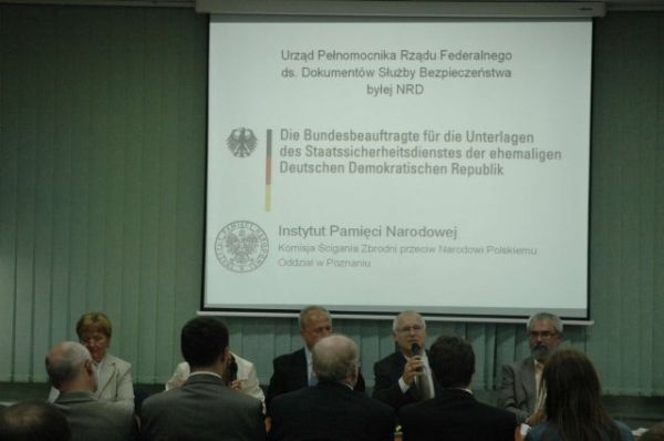 O godz. 13.00 rozpoczęła się konferencja prasowa, którą otworzył dyrektor Ireneusz Adamski, przedstawiając gości i cel ich wizyty, którym jest potrzeba pogłębienia współpracy, zainicjowanej wcześniejszą wizytą przedstawicieli poznańskiego IPN w oddziale tzw. Urzędu Gaucka we Frankfurcie nad Odrą. Pracownicy tamtejszego oddziału BStU poinformowali o zadaniach statutowych Urzędu, strukturze organizacyjnej i prowadzonej działalności. Dyrektor Oddziału BStU Ruediger Sielaff powiedział, że we Frakfurcie nad Odrą znajdowało się duże i ważne przejście graniczne pomiędzy Polska a NRD i gdzie szczególnie intensywnie działały NRD-owskie służby bezpieczeństwa. W związku z tym w oddziale we Frankfurcie znajduje się stosunkowo duża liczba dokumentów wytworzonych przez te służby, związanych z Polską, Polakami oraz z Poznaniem i Wielkopolską. Dyrektor Sielaff przekazał dyrektorowi poznańskiego oddziału IPN specjalnie przygotowany z okazji tej wizyty przewodnik po archiwaliach zasobu we Frankfurcie, dotyczący spraw polskich.