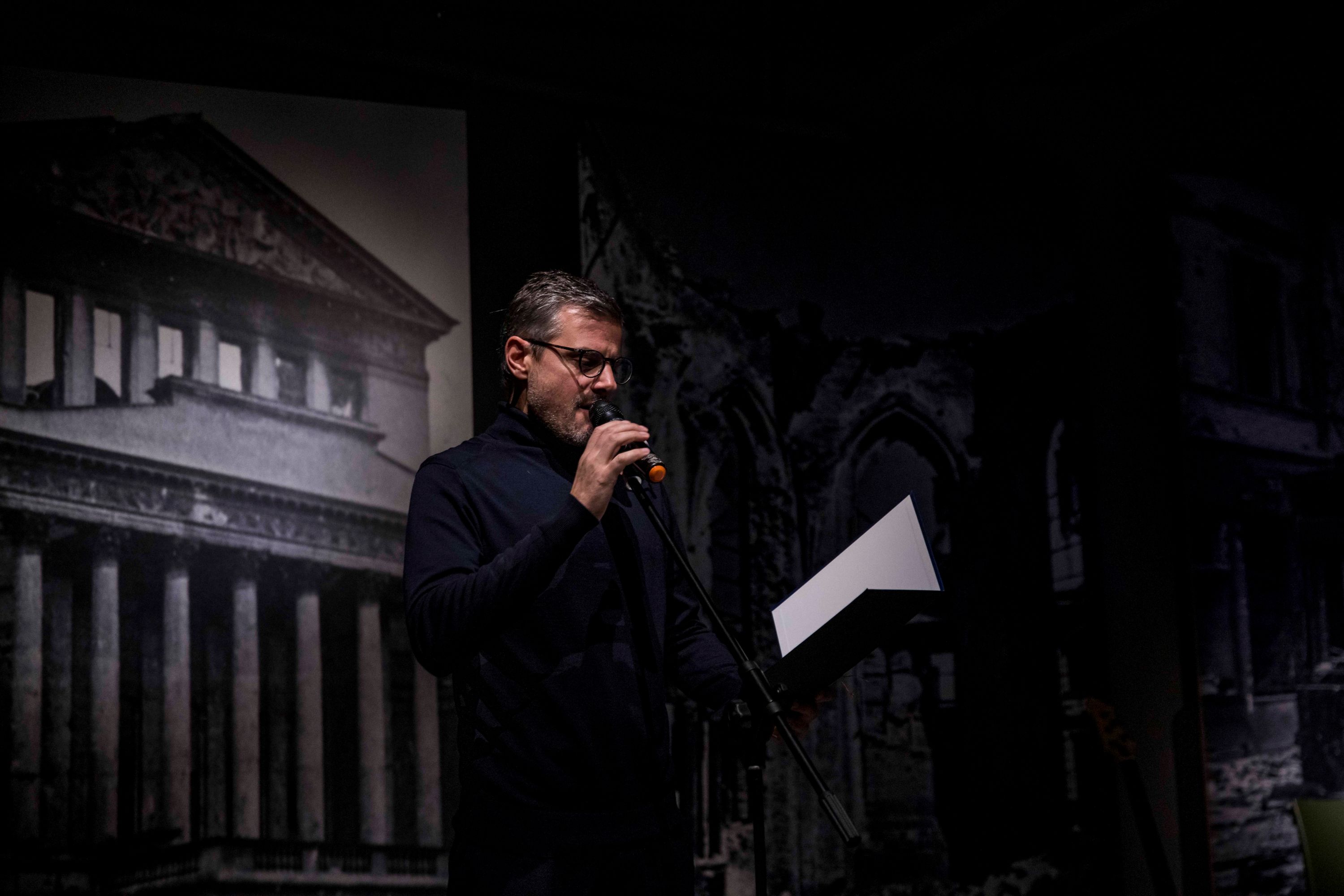 W dalszej części spotkania odbył się spektakl literacko-muzyczny, na który składały się wiersze związane z wojenną tragedią Warszawy, odczytane przez aktora Antoniego Pawlickiego ilustrowane muzycznie utworami wykonanymi przez Franciszka Pospieszalskiego.