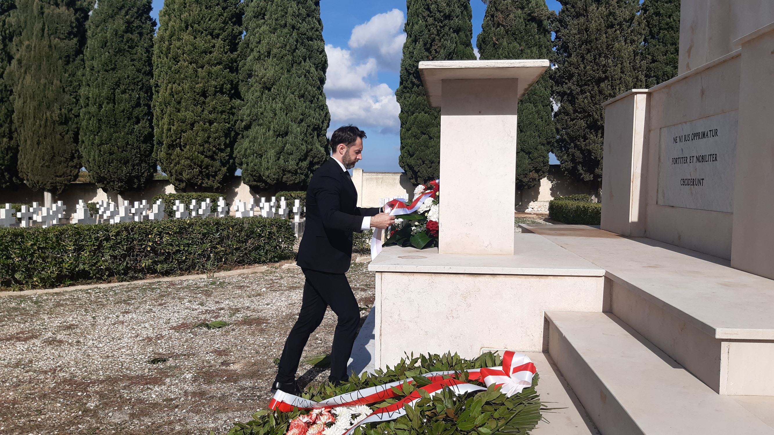 Następnego dnia delegacja Instytutu odwiedziła Polski Cmentarz Wojskowy w Casamassima, gdzie złożono kwiaty pod ołtarzem z medalionem przedstawiającym Matkę Bożą Ostrobramską oraz tablicą z napisem: NE VI IUS OPPRIMATUR FORTITER ET NOBILITER CECIDERUNT (Nie siłą prawa złamani, mężnie i szlachetnie zginęli). Jak na każdym polskim cmentarzu wojennym we Włoszech, wśród dominujących grobów katolików znajdujemy pochówki żołnierzy prawosławnych, wyznania mojżeszowego oraz muzułmanów.