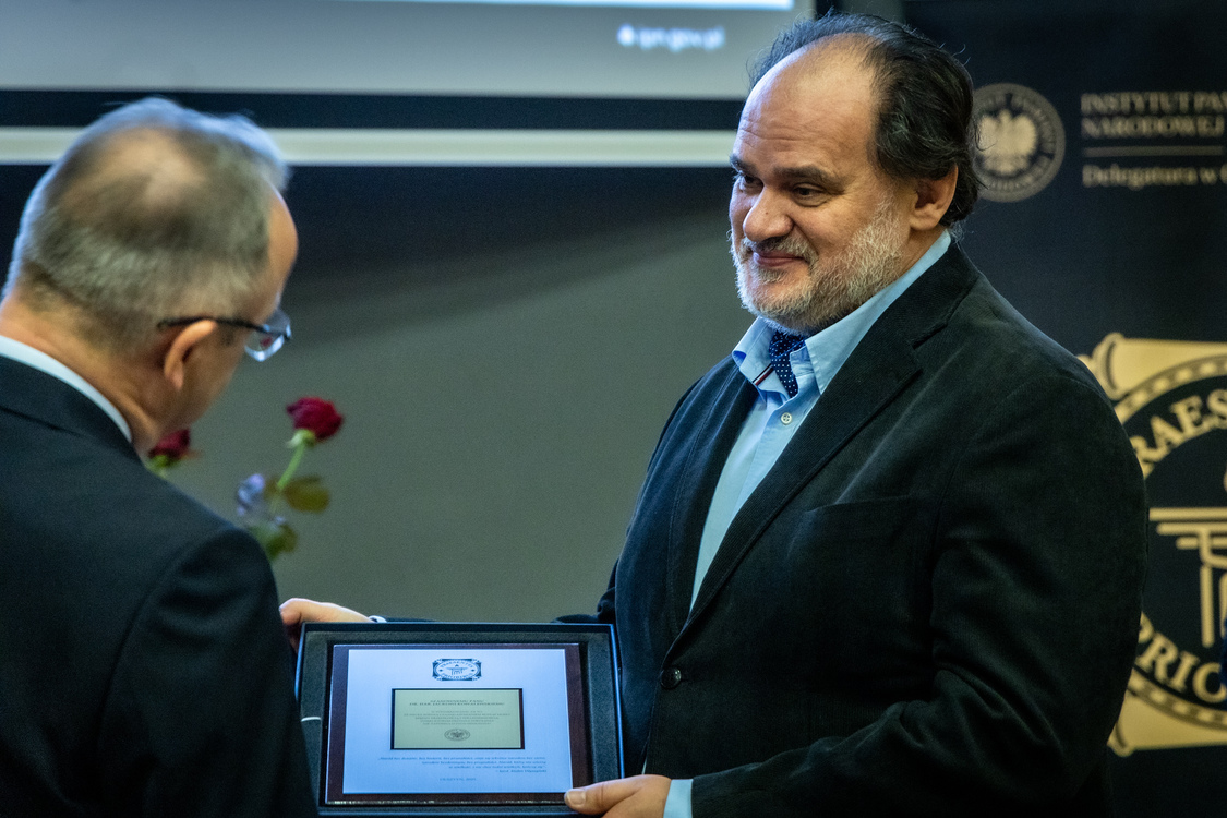 Uroczystość wręczenia Krzyży Wolności i Solidarności oraz nagrody Praesentes Prioribus. Na zdj. odznaczony – Krzysztof Skorski – Olsztyn, 28 listopada 2025. Fot. Łukasz Czechyra (IPN)