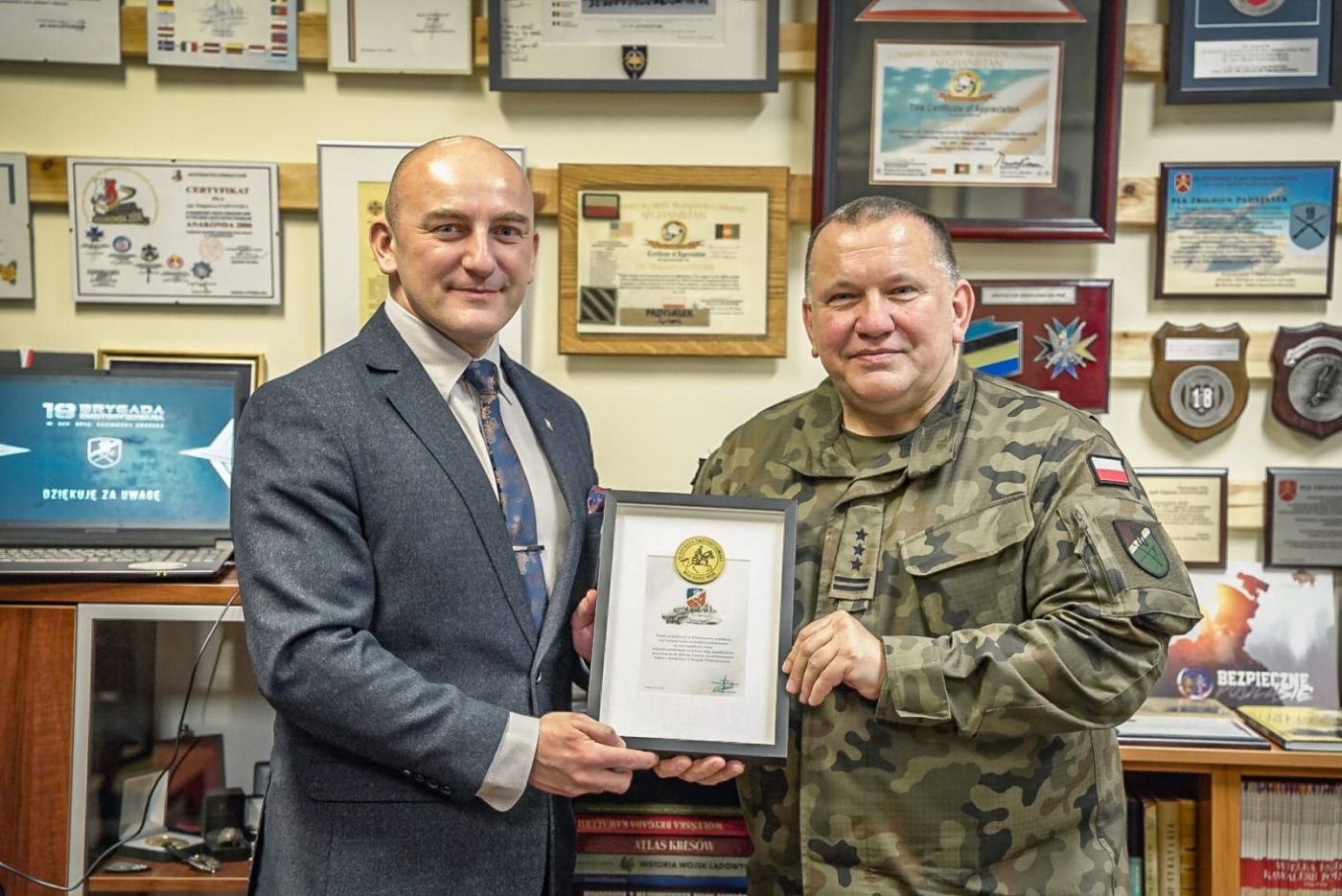 Robocza wizyta w miejscach stacjonowania brygady dotyczyła współpracy Instytutu Pamięci Narodowej z jednostką Wojska Polskiego w dziedzinie upamiętnienia patrona brygady – gen. bryg. Kazimierza Dworaka. Bohater był w 1939 r. dowódcą 24 Pułku Ułanów. W Polskich Siłach Zbrojnych na Zachodzie pełnił funkcję zastępcy gen. broni Stanisława Maczka, dowódcy 1. Dywizji Pancernej. W planach wspólnych przedsięwzięć podniesiona została m.in. kwestia urządzenia miejsc pamięci związanych z patronem jednostki.