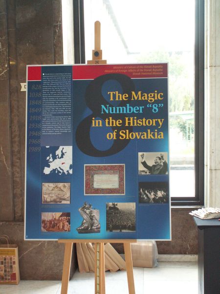 Natomiast wystawa „Magiczna »ósemka« w dziejach Słowacji”, bardziej przekrojowa, traktuje o dziejach Słowacji, w tym Czechosłowacji, i koncentruje się na tak ważnych datach jak lata: 1848, 1918, 1938, 1948 i 1968.