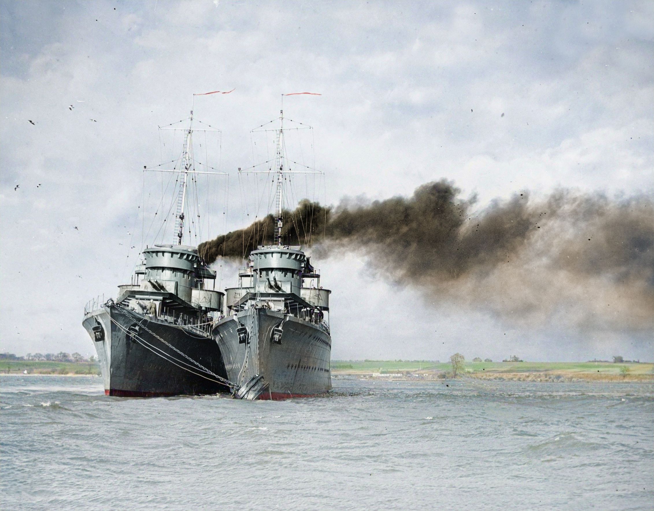 Polskie niszczyciele ORP Grom i ORP Błyskawica po przybyciu do Wielkiej Brytanii, wrzesień 1939 r.(fot. Imperial War Musem) sygn. HU_076126 -