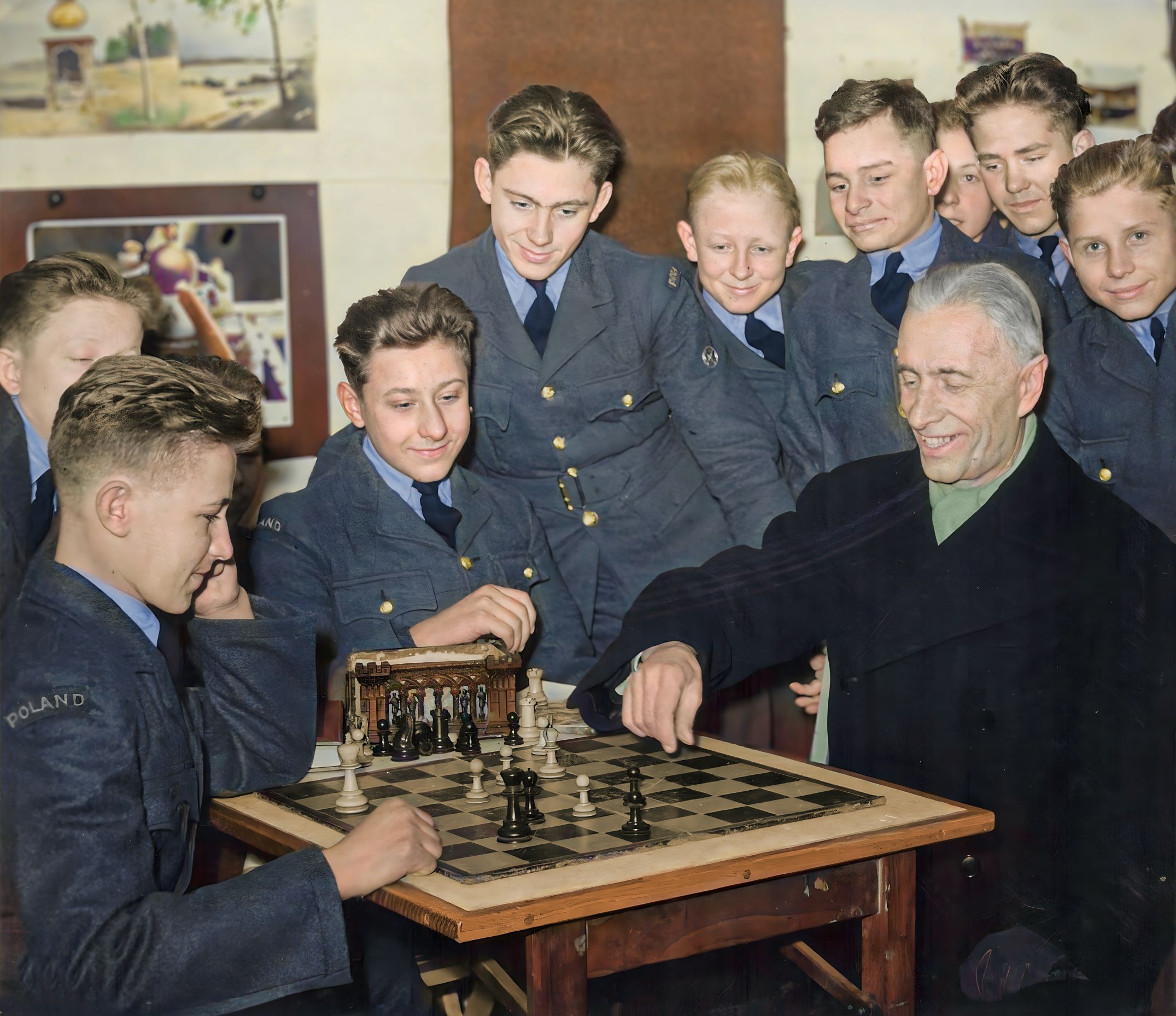 Prezydent RP Władysław Raczkiewicz gra w szachy podczas wizyty w szkole junaków w Szkocji, 1943-1944, (fot. AIPN) IPNBU-2-6-241-4 -