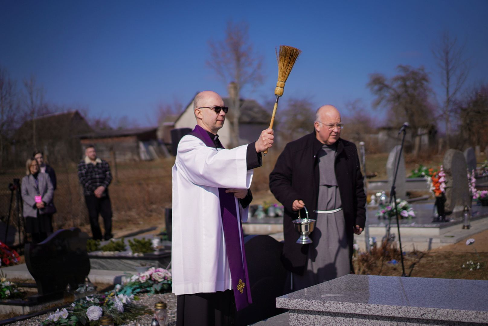 Następnie ksiądz Włodzimierz Sołowiej, proboszcz Parafii pw. św. Kazimierza w Powiewiórce, odmówił modlitwę oraz poświęcił pomnik nagrobny. Na zakończenie uroczystości zebrani złożyli kwiaty oraz znicze na grobie bohatera.
