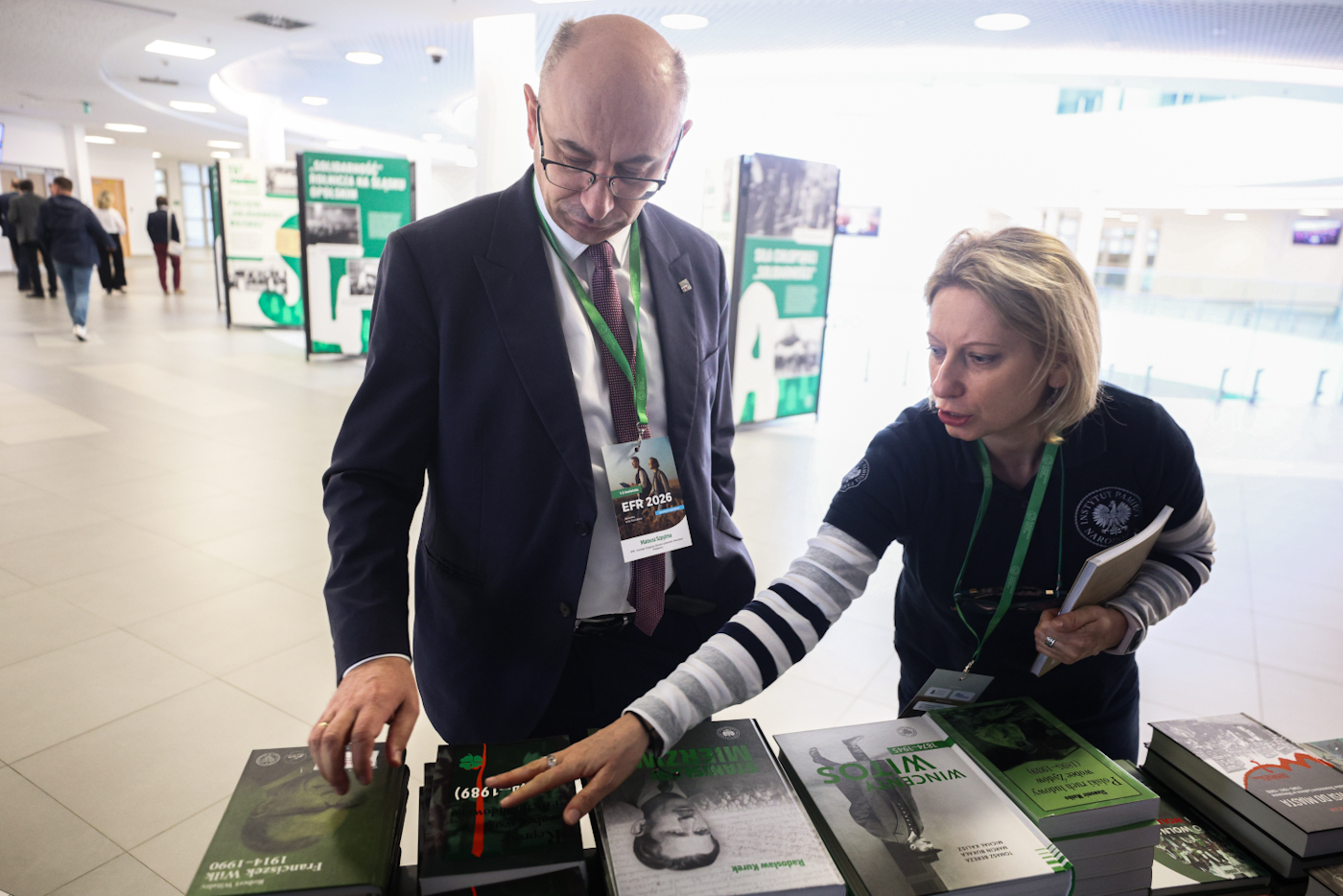 Wystawa IPN „TU rodziła się »Solidarność« rolników” oraz publikacje Wydawnictwa IPN poświęcone ruchowi ludowemu prezentowane podczas Europejskiego Forum Rolniczego – Jasionka, 1 kwietnia 2026. Fot. Sławek Kasper (IPN) -