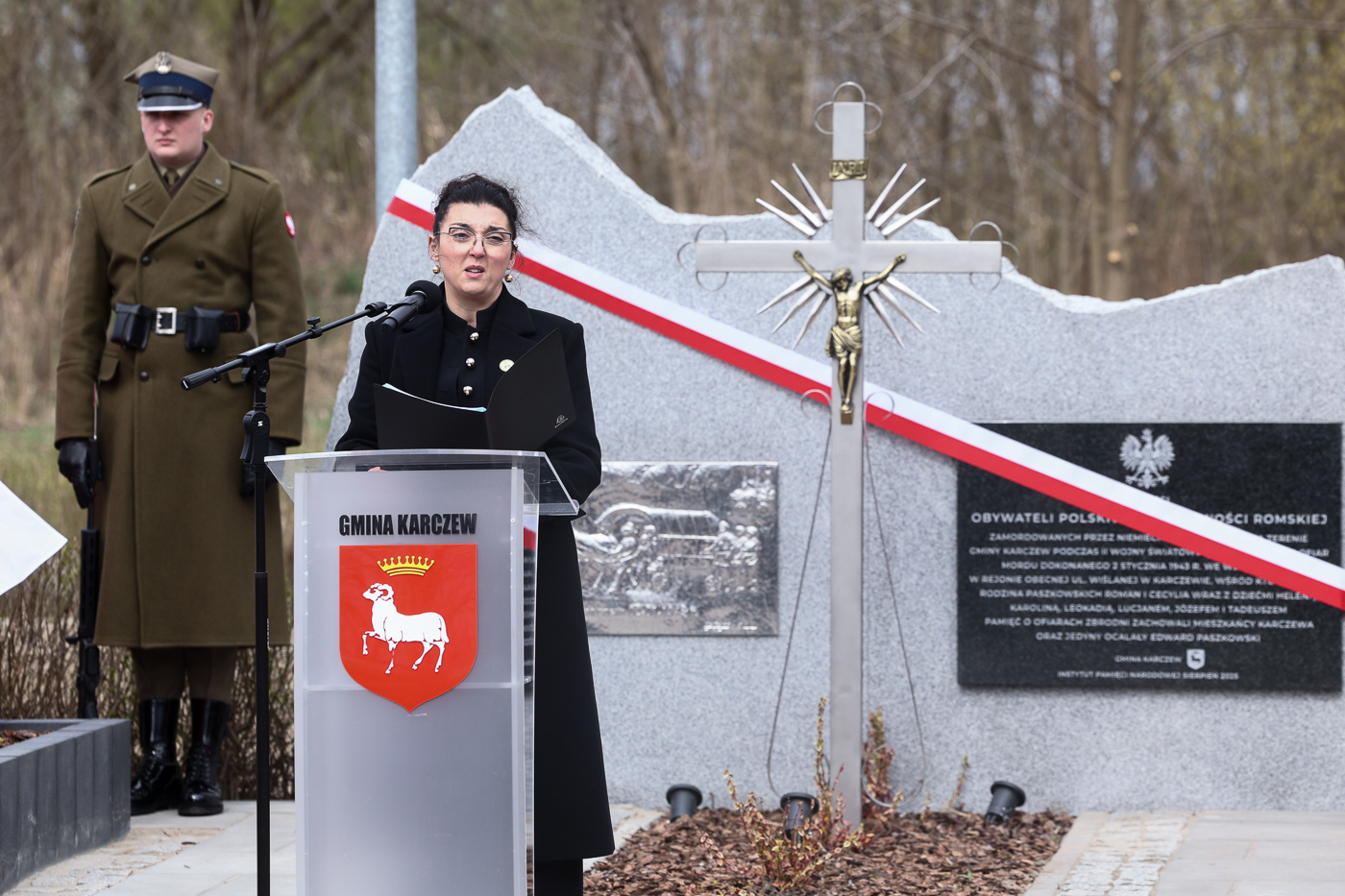 Pomnik, współfinansowany przez Instytut Pamięci Narodowej, odsłonili burmistrz Karczewa Michał Rudzki, Monika Paszkowska oraz dr Mateusz Szpytma.